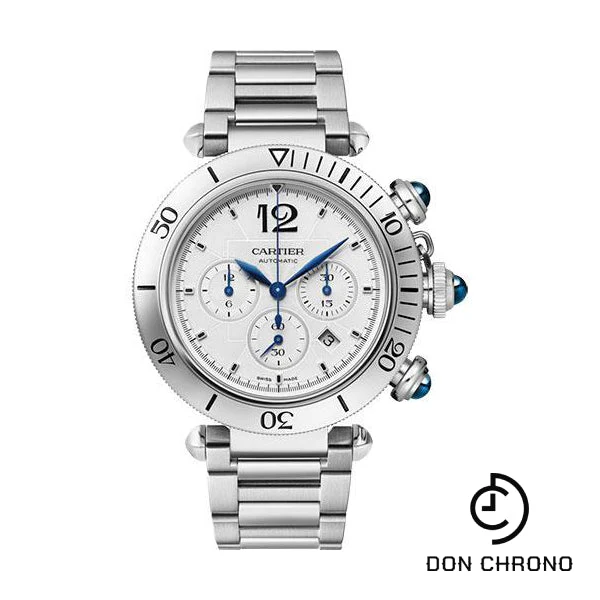 41 mm steel case, fluted crown, silvered flinque dial, caliber 1904-CH MC automatic movement, steel bracelet with smartlink adjustment system, second strap in dark gray alligator leather strap, interchangeable steel deployant buckle. Water resistant to 10 bar (approx 100 meters/330 feet).