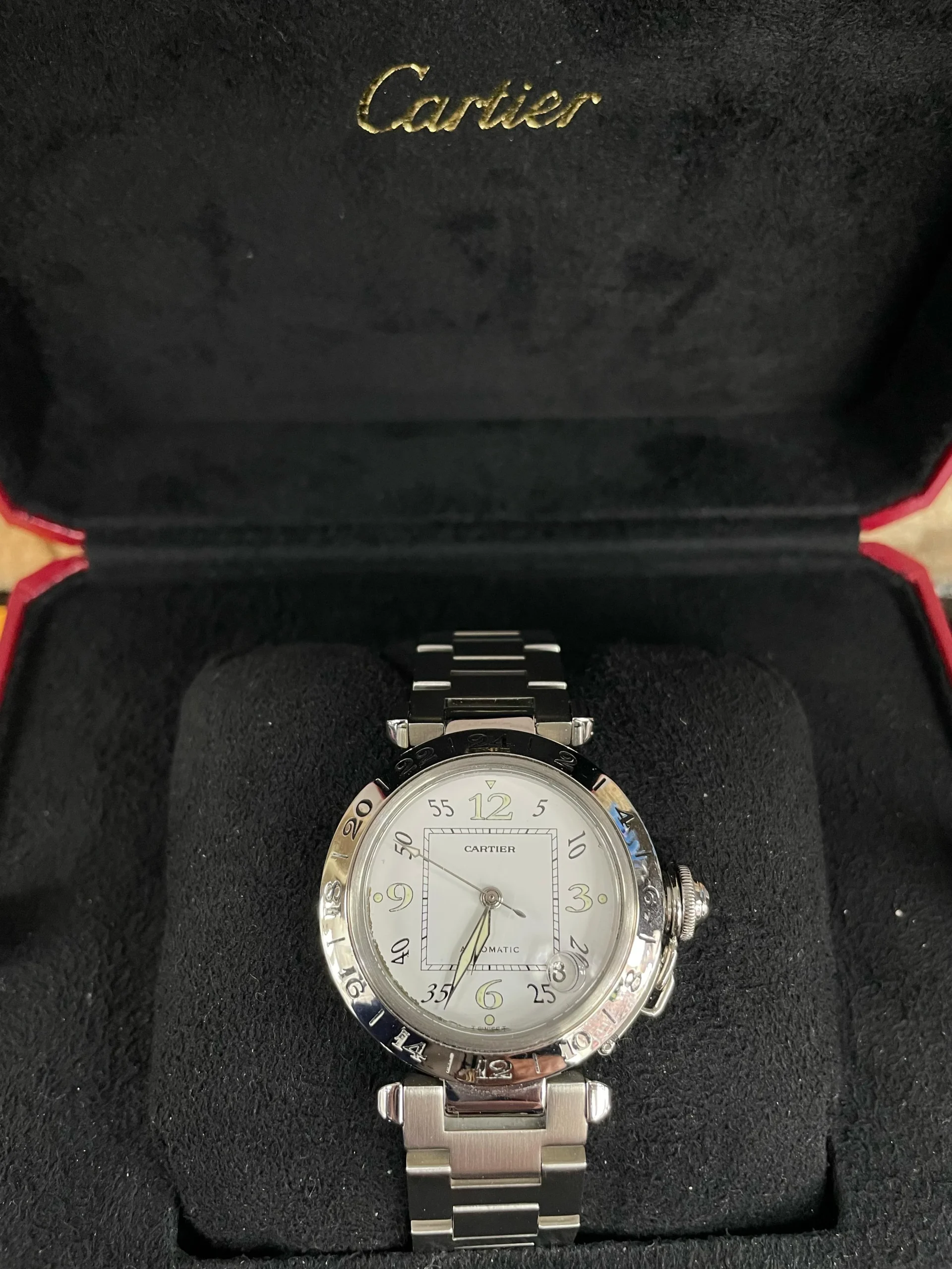 Expertly crafted by Cartier, the Pasha St. Steel 36mm watch (Model 2324) combines timeless design with superior functionality. Made from high-quality stainless steel, this luxury timepiece exudes elegance and durability. With its precise movements and stylish appearance, the Pasha watch is the perfect accessory for any occasion.