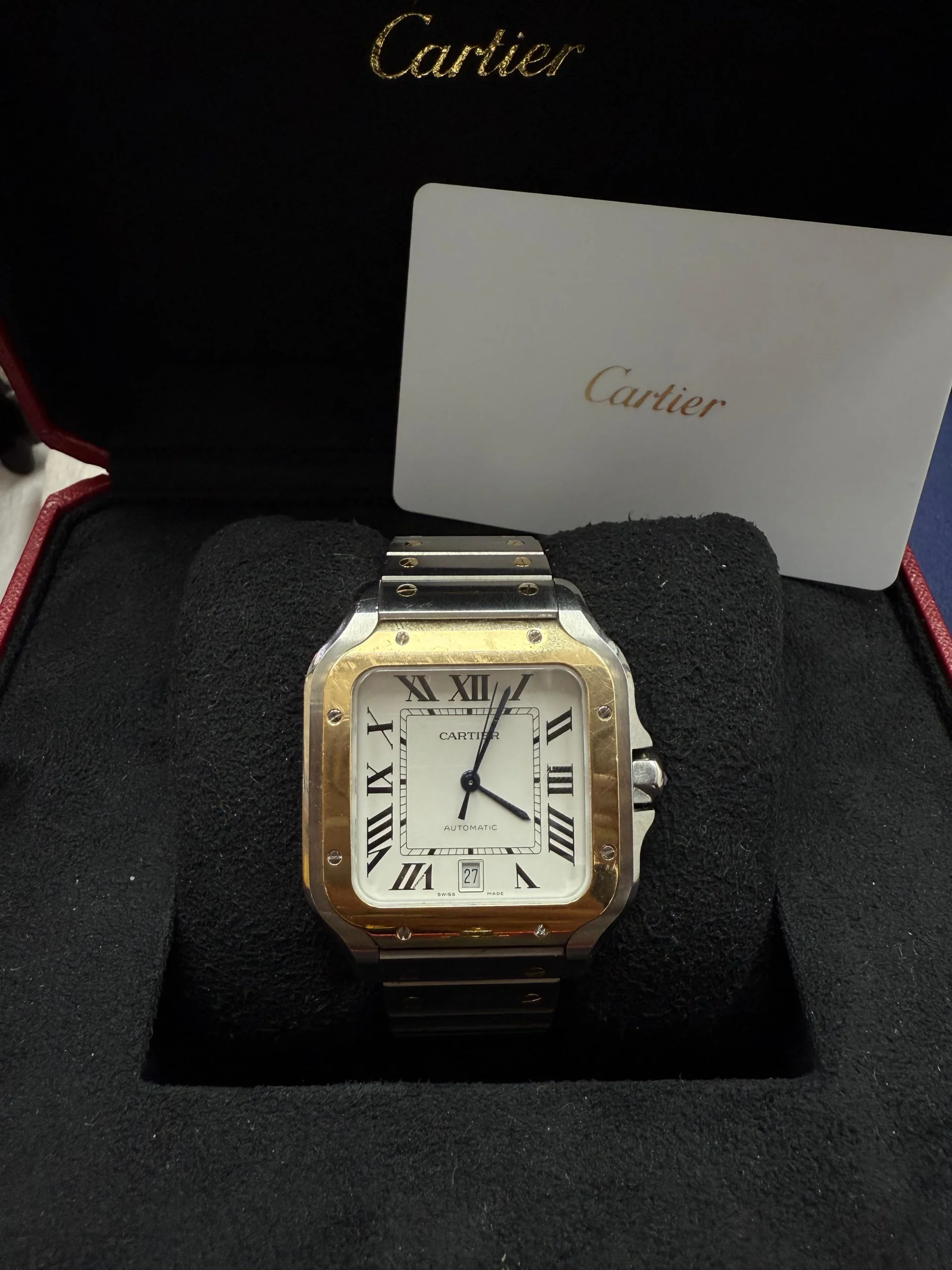 The Cartier Santos Large Two-Tone 40mm (W2SA0009) from 2024 combines classic elegance with robust functionality. Crafted with a sophisticated blend of stainless steel and gold, this timepiece features a 40mm case size designed for a commanding yet refined wrist presence. Included with its original box and papers, the watch ensures authenticity and provenance, making it a distinguished addition for collectors and connoisseurs alike.