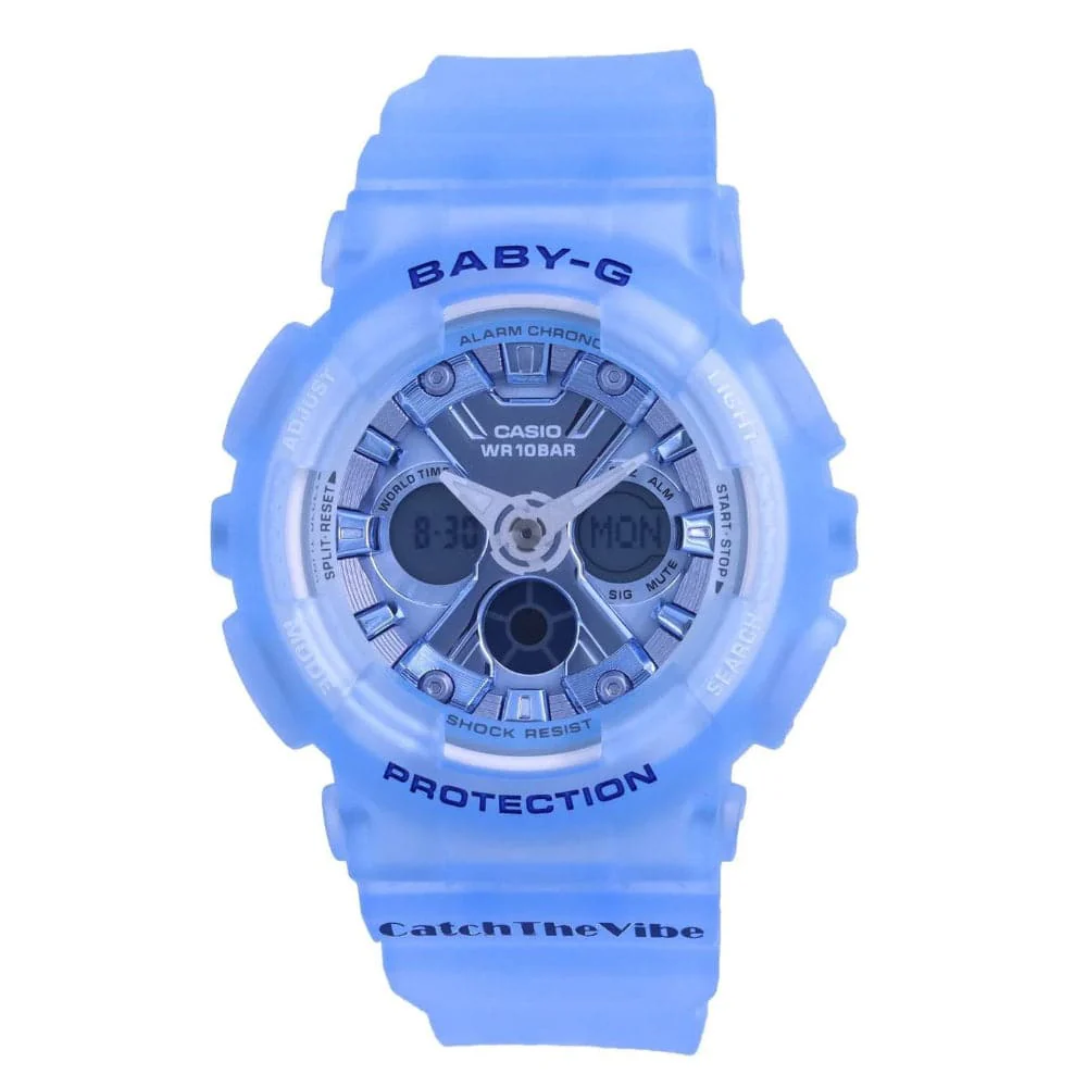 The “Catch the Vibe” message printed on the watchbands embodies the hip-hop culture of the 90’s early to early 2000s, bringing back that edgy retro vibe in a truly special timepiece. This BABY-G will get your heart racing and ready for dance mode.