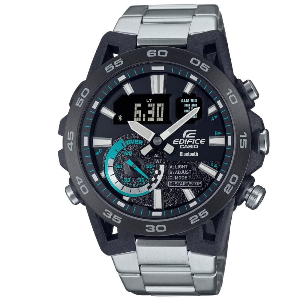 Casio Edifice Black Dial Silver Stainless Steel Strap Men Watch ECB-40DB-1ADF
