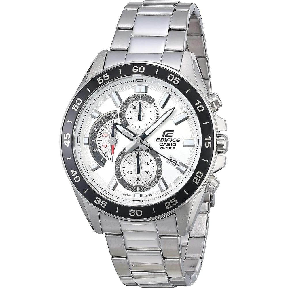 A large standard EDIFICE chronograph. Use of an extra-thick inset dial creates a powerful, dynamic design.