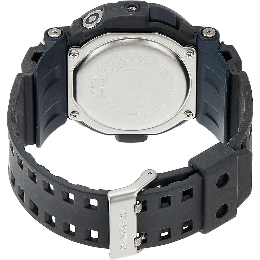 This new G-SHOCK is designed and engineered for those special dark, secret missions that demand something extra. The timer function is has a large, specially designed easily identifiable dedicated button for quick and sure operation under the toughest of conditions. When the timer reaches the end of its countdown, you can select to be alerted by either a vibration operation or a tone plus LED flash operation. The special shock absorber design of the back of the watch helps to ensure that vibration is felt by the writs.