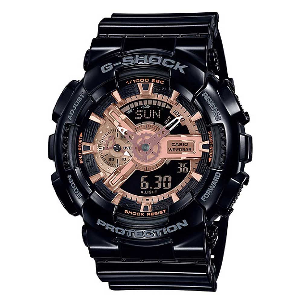 G-SHOCK is the watch brand that is always finding ways to incorporate world culture icons into exciting new designs. This new model is based on street fashion motifs, decorated with distinctive black and rose gold coloring. The black coloring of this model is a glossy black finish, while the face is accented with rose gold coloring. Base model is the popular large face digital-analog combination GA-110. The designs of this new variations incorporate the distinctively powerful aspects of the base model. All of this and more make this model the perfect choice for street fashion wear, as well for use while engaging in action sports, outdoor activities, and more.