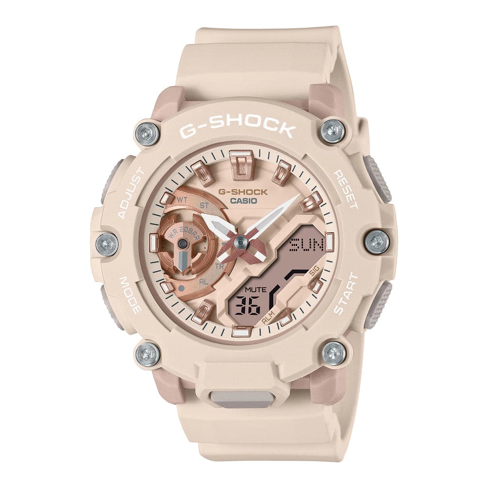 Urban outdoor fashion meets subtle monochromatic color schemes and standout design. Watch components in varying tones and textures come together in a tone-on-tone design with unexpected depth and dimension. We keep the sporty GA-2200 design with analog hands and digital display, but with a slightly smaller case and slimmer design for an even more comfortable fit.