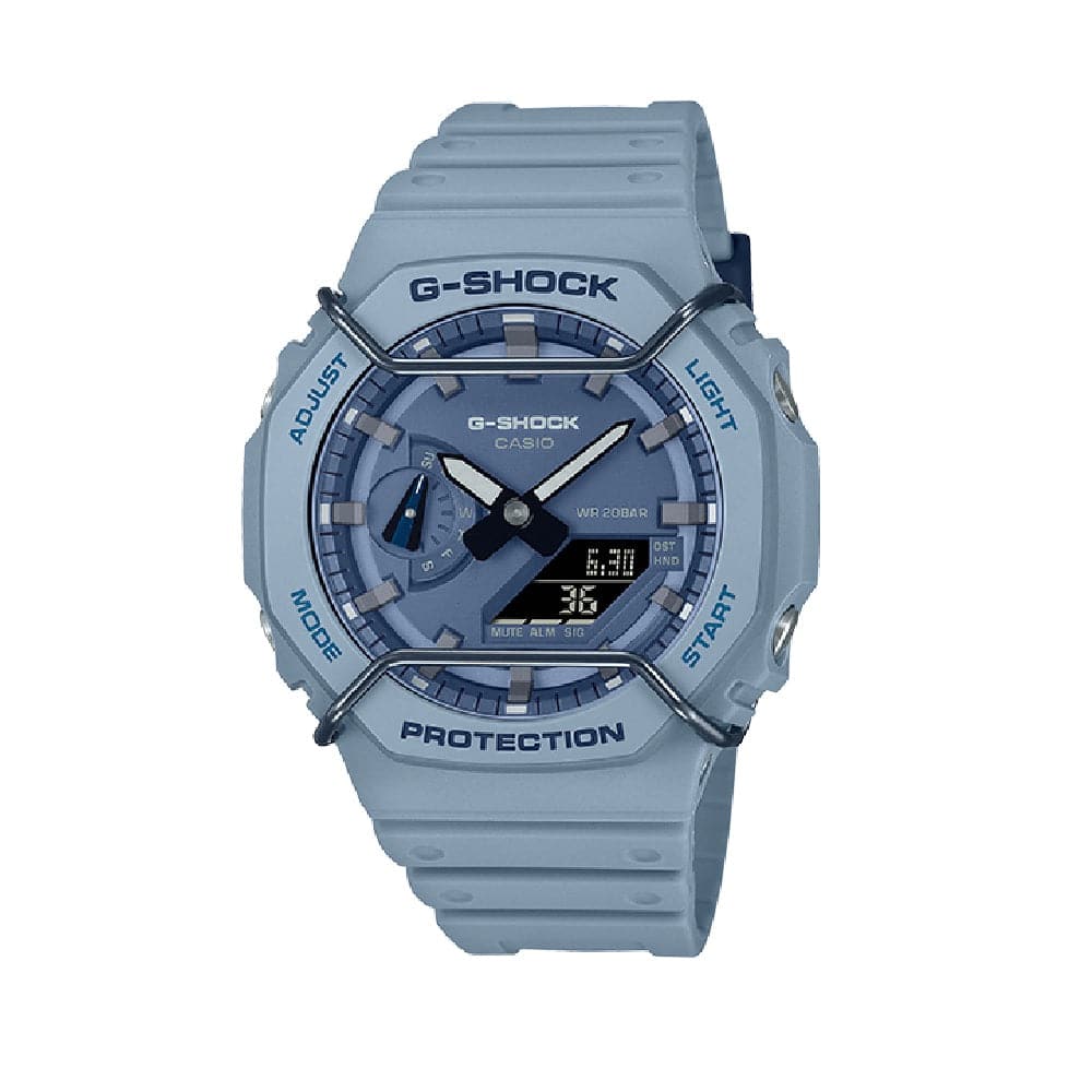 The wire face protectors are a first ever for the 2100 line. Choose from three models: the ever-popular angular DW-5600, the round-case DW-5700, and the GA-2100 with octagonal bezel.