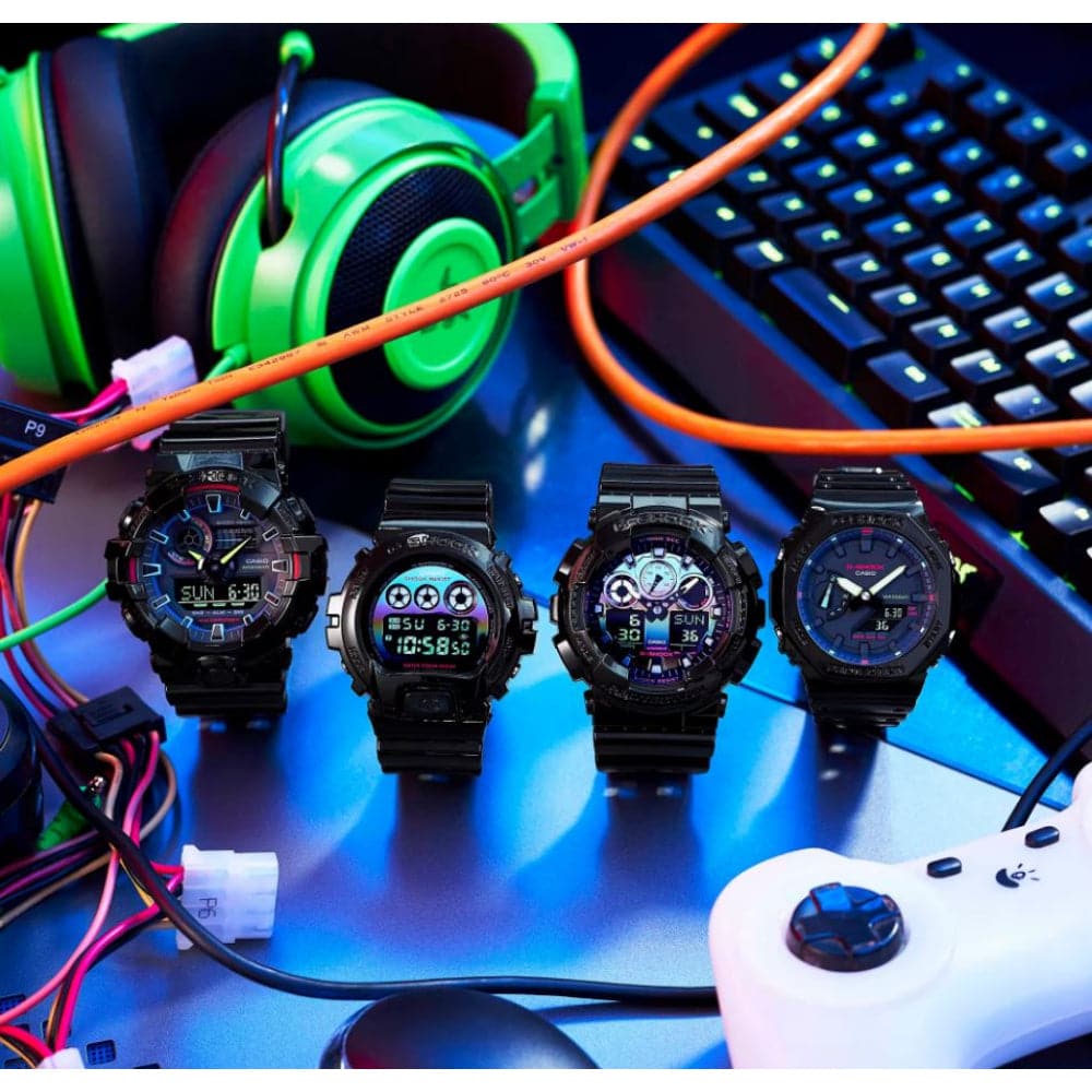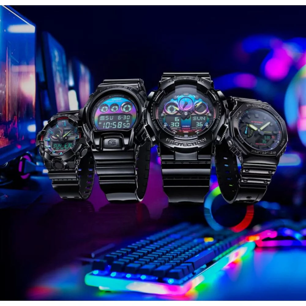 Venture into the Virtual Rainbow lineup — explore the colorful spectrum that emerges when the cybertech game-world aesthetic meets the G-SHOCK quest for the ultimate toughness.