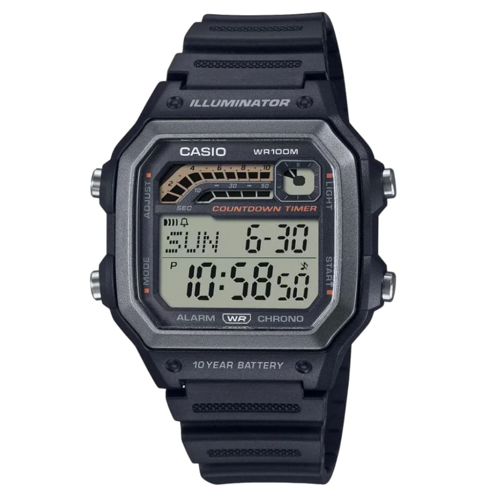 These multi-sports watches are always ready to go, with a 10-year battery, water resistance up to 100 meters, LED lighting, countdown timer, and alarm.