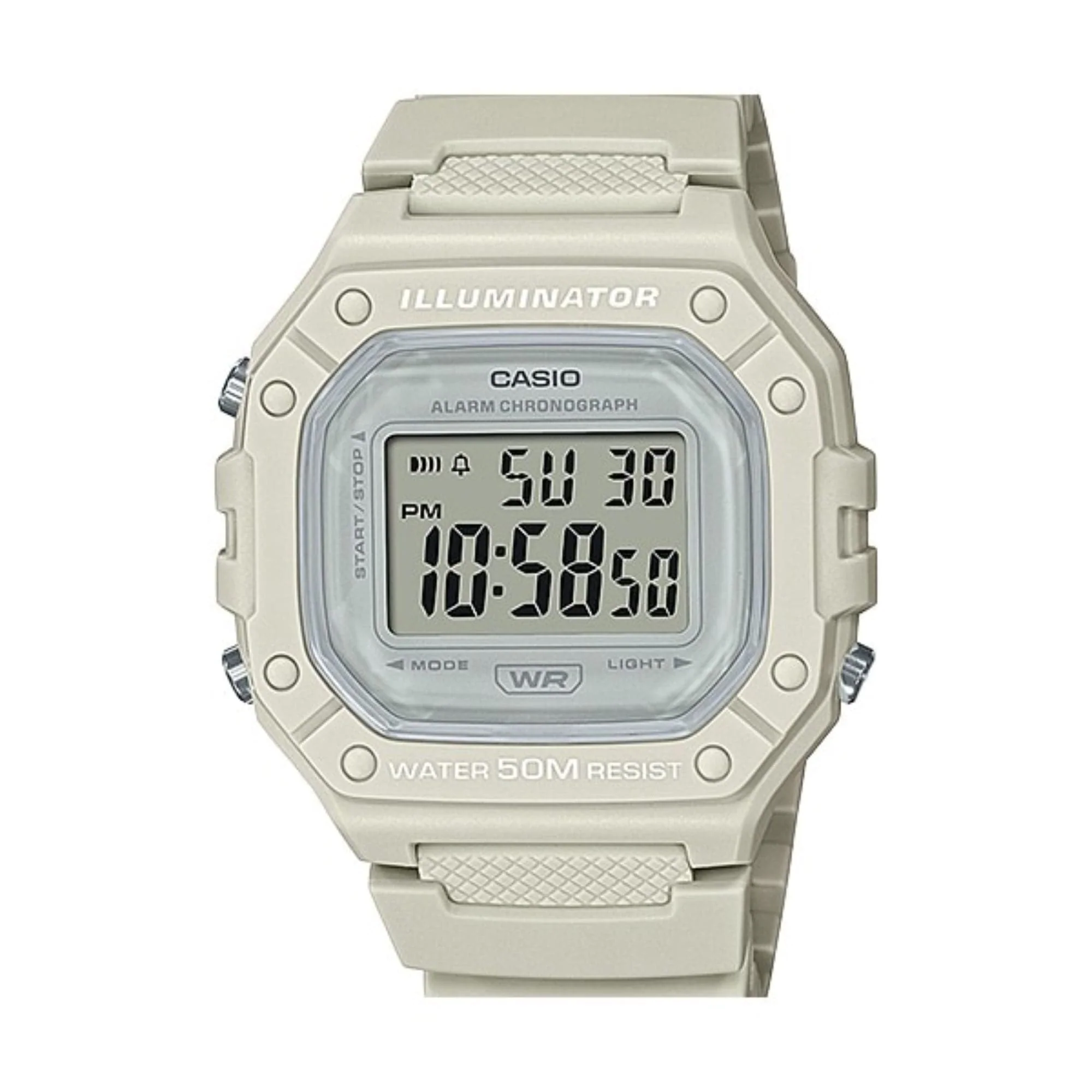 This sporty design features a colorful pop to take you seamlessly from dressy to casual, whatever is on your calendar. Not just versatile, but practical, as well. With the functionality that digital delivers — LED light for easy reading in the dark, 1/100-second stopwatch, alarm, and calendar — all protected by 50-meter water resistance.