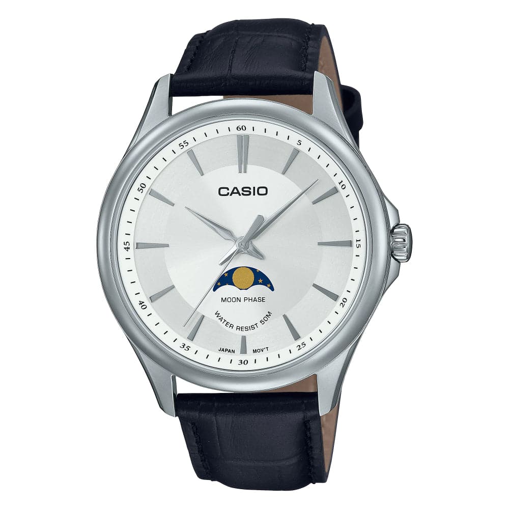 Designed around the classic look of hour, minute and second hands, these stylish analog watches feature a moon phase indicator to take you where you want to go, whether on or off the clock.