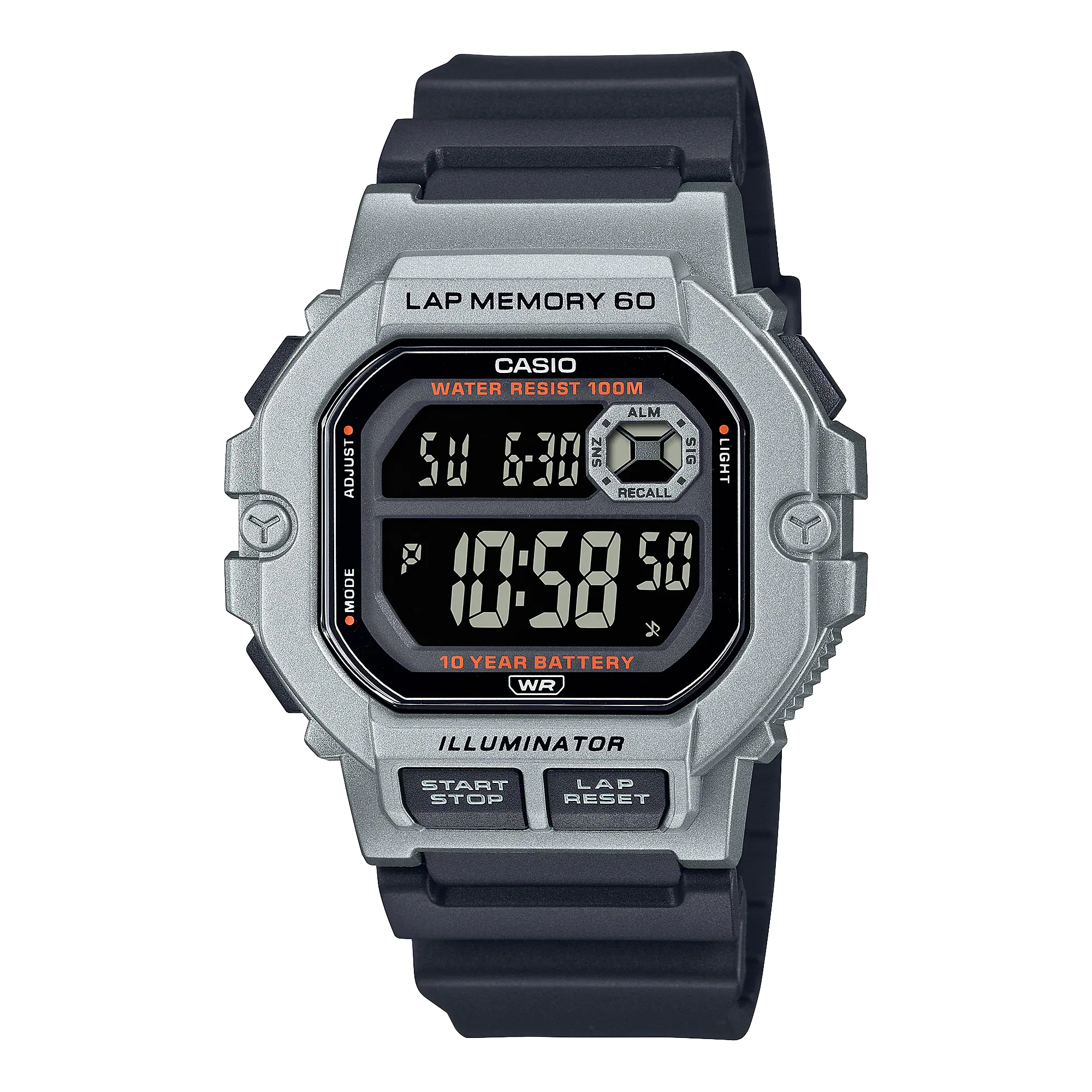 Backed by a 10-year battery life and crafted for everyday durability, it includes a full auto-calendar, 3 alarms with snooze, and a countdown timer with auto-repeat. Whether you’re tracking laps or traveling across time zones, this black dial Casio watch delivers seamless versatility and long-lasting performance in a sleek, modern build.