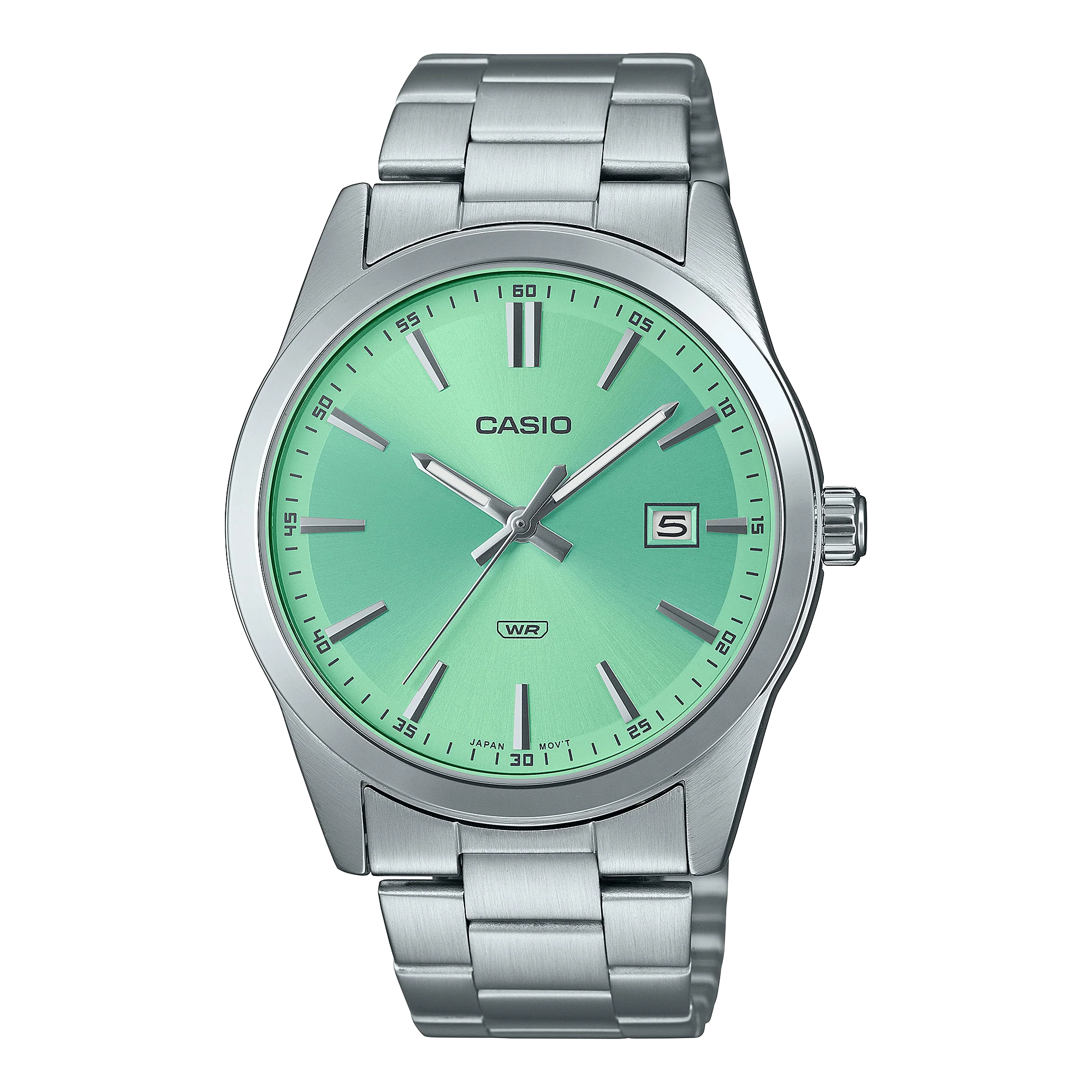 Introducing the Casio Standard Silver Stainless Steel Green Dial Watch MTPVD03D-3A2. Made with high-quality materials, this watch offers durability and style. The vibrant green dial adds a touch of uniqueness to your look. Perfect for any occasion, this watch is a reliable and fashionable accessory.