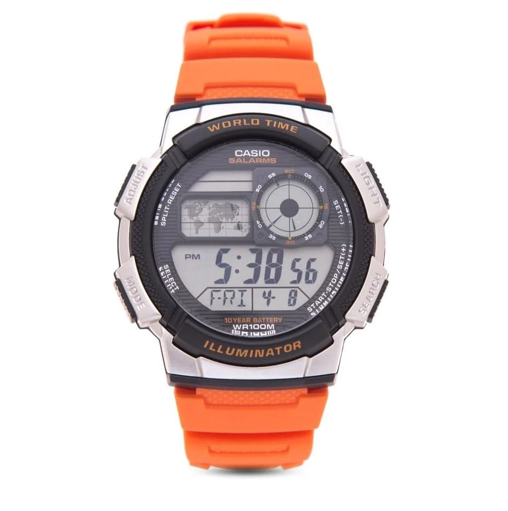 Casio Watch for Men’s Orange Rubber Strap 100m Digital AE-1000W-4BVDF-P