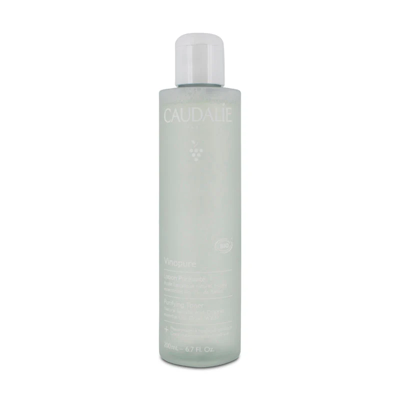Achieve a clean, clear, and mattified look by using the salicylic acid-containing Caudalie Vinopure Purifying Toner. It is a vegan formulation that tightens the pores.