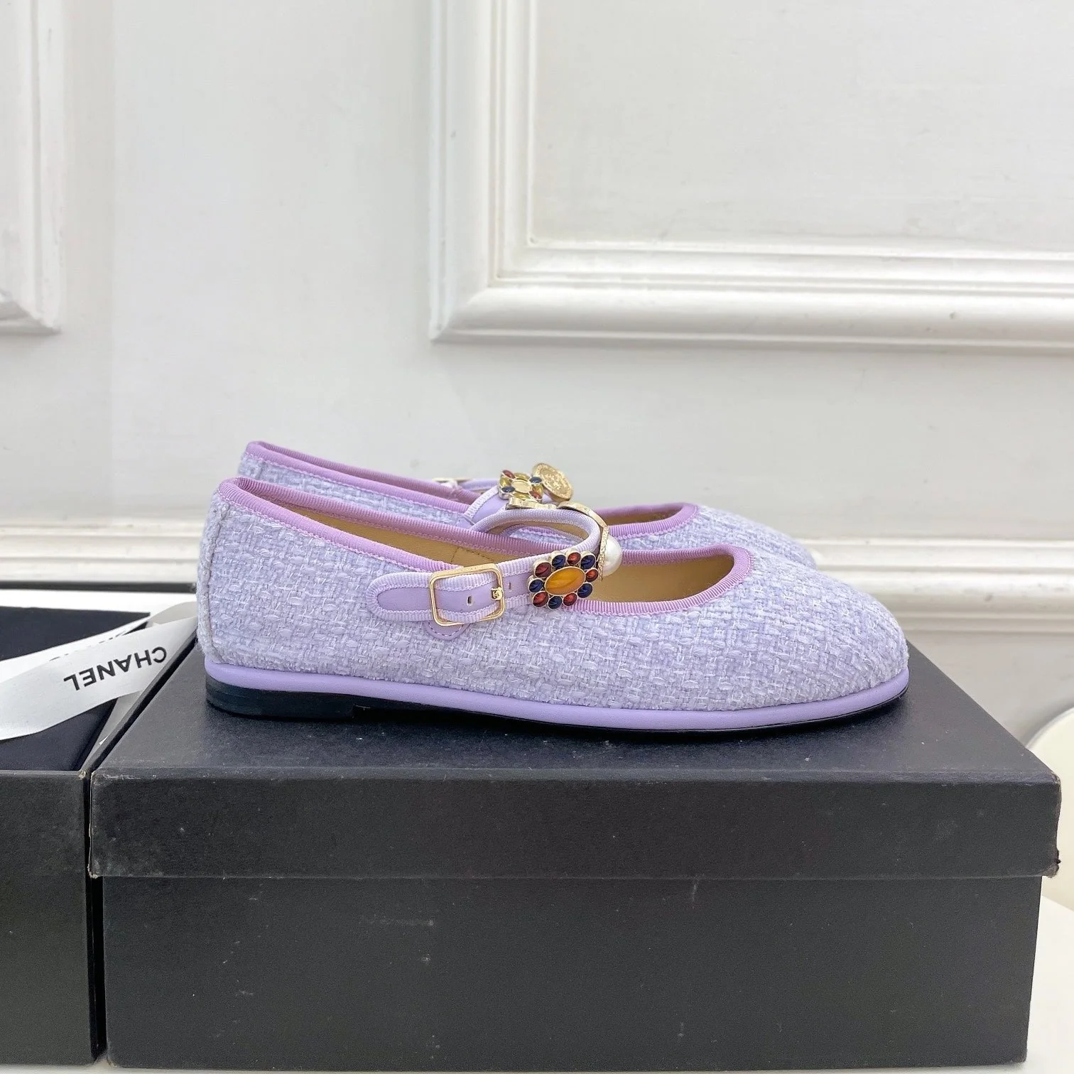 CC Ballet Flats 10mm Light Violet Wool Tweed And Fabric 948830