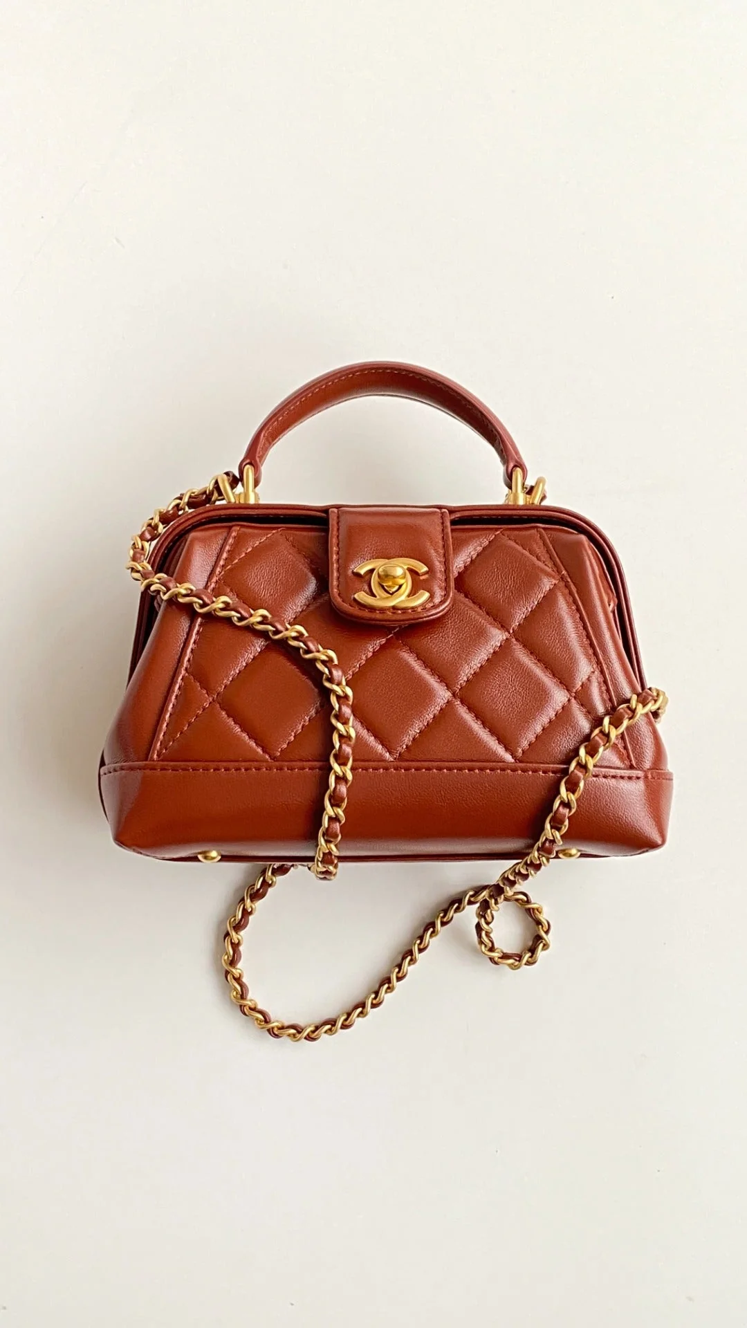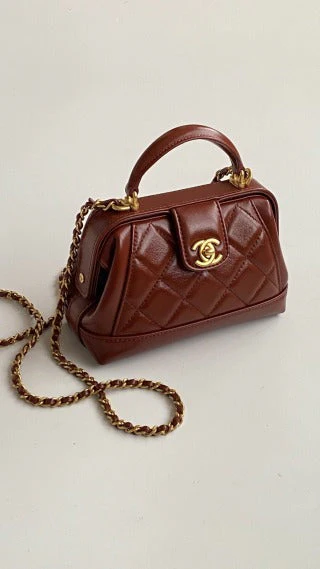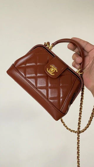 CC Mini Top Handle 18cm Red Leather Gold Hardware