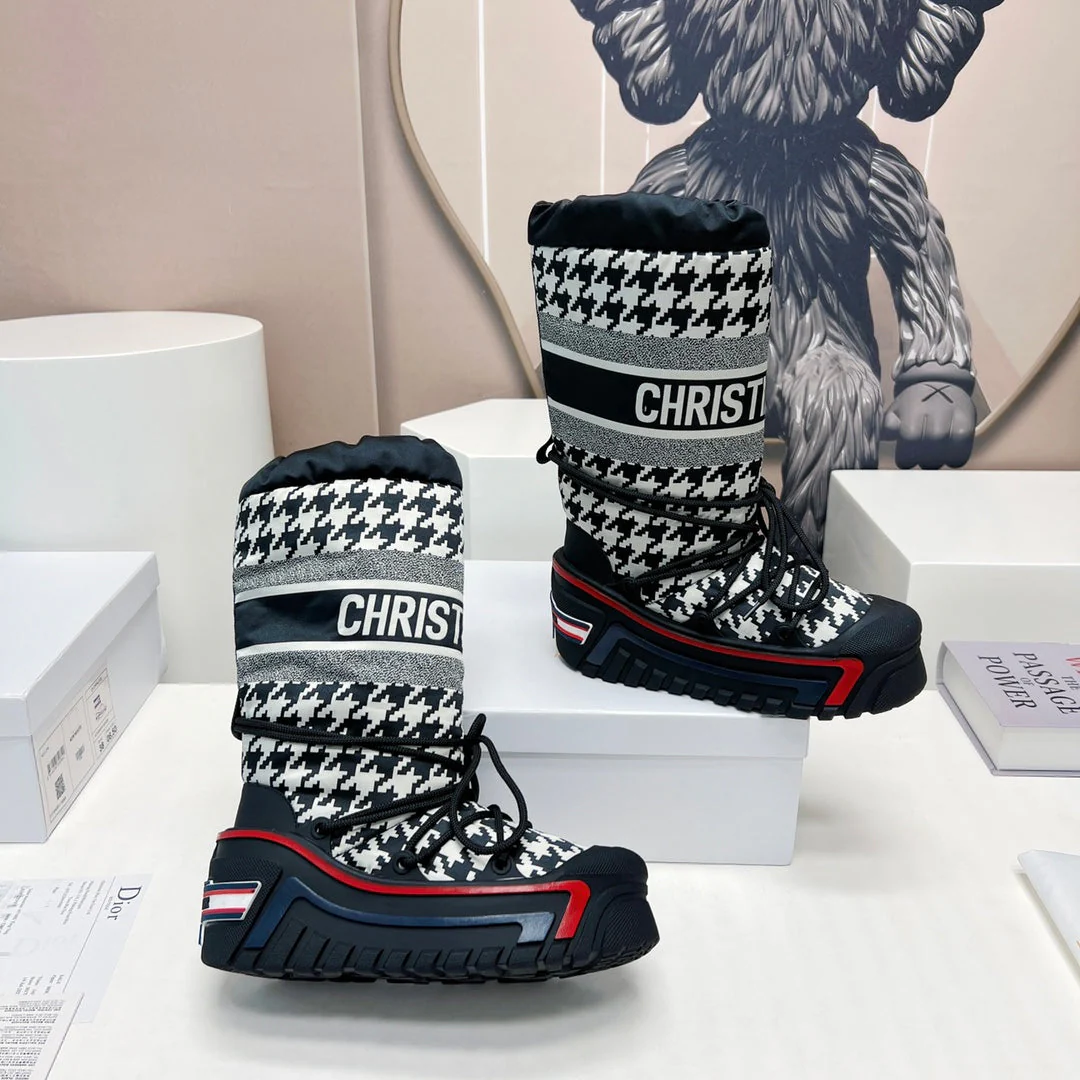 CD Platform Snow Boots Black White Cowhide Nylon Fabric 539656