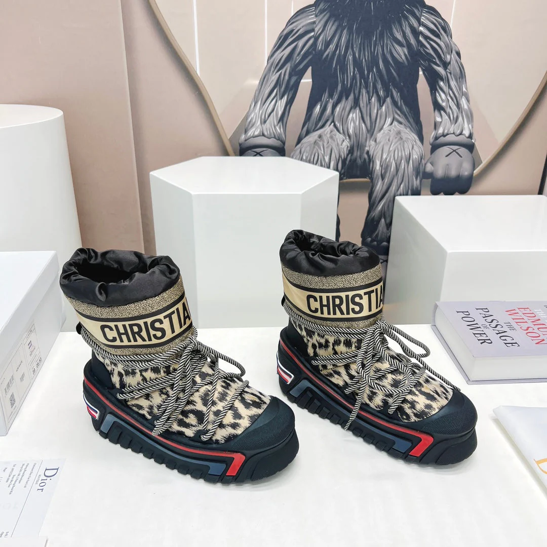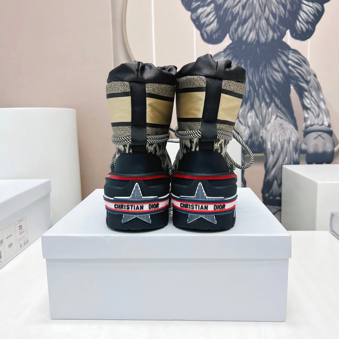 CD Snow Ankle Boots Black Beige Cowhide Nylon Fabric 539662