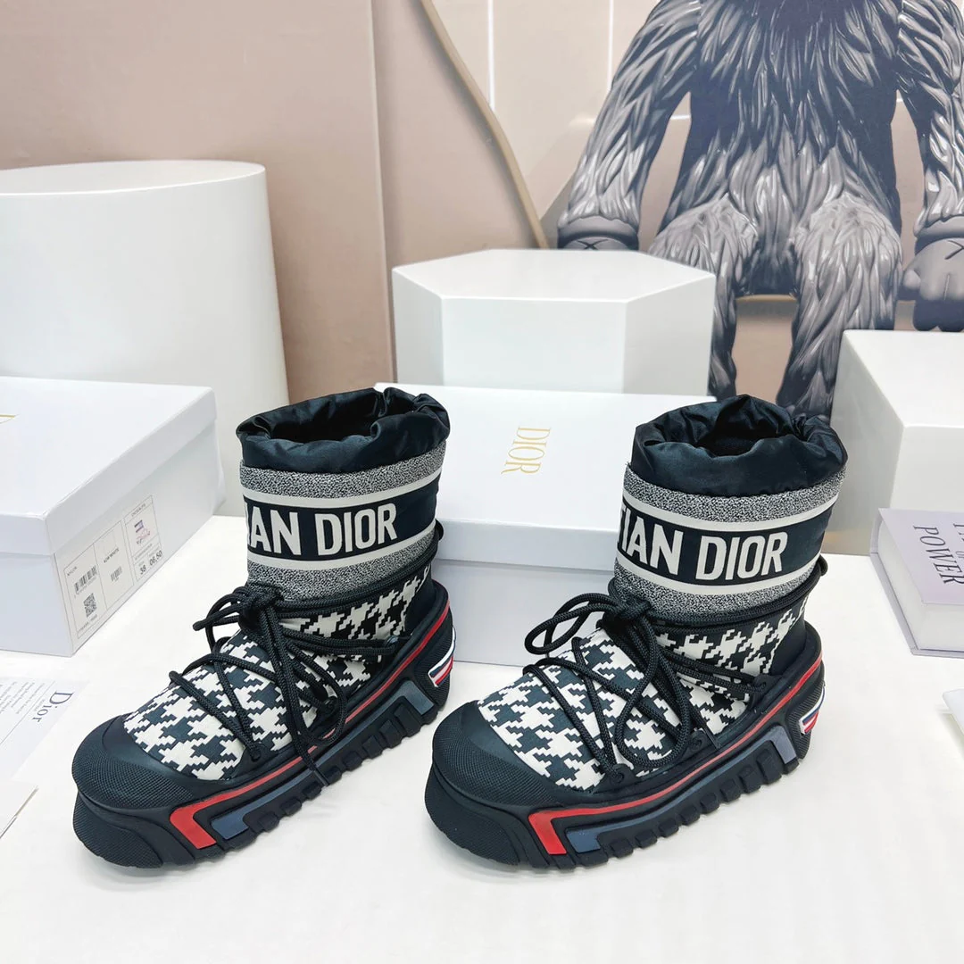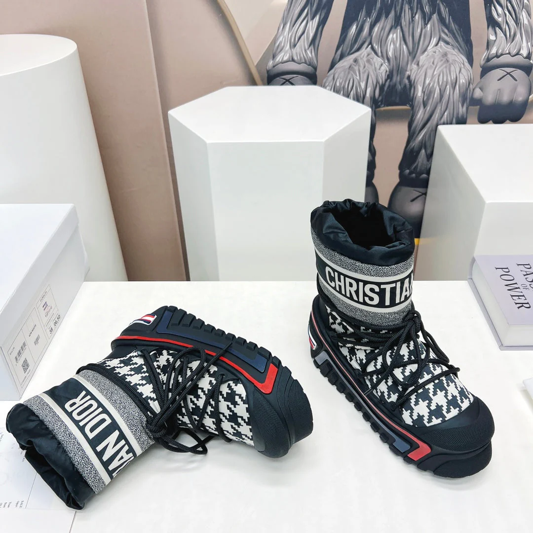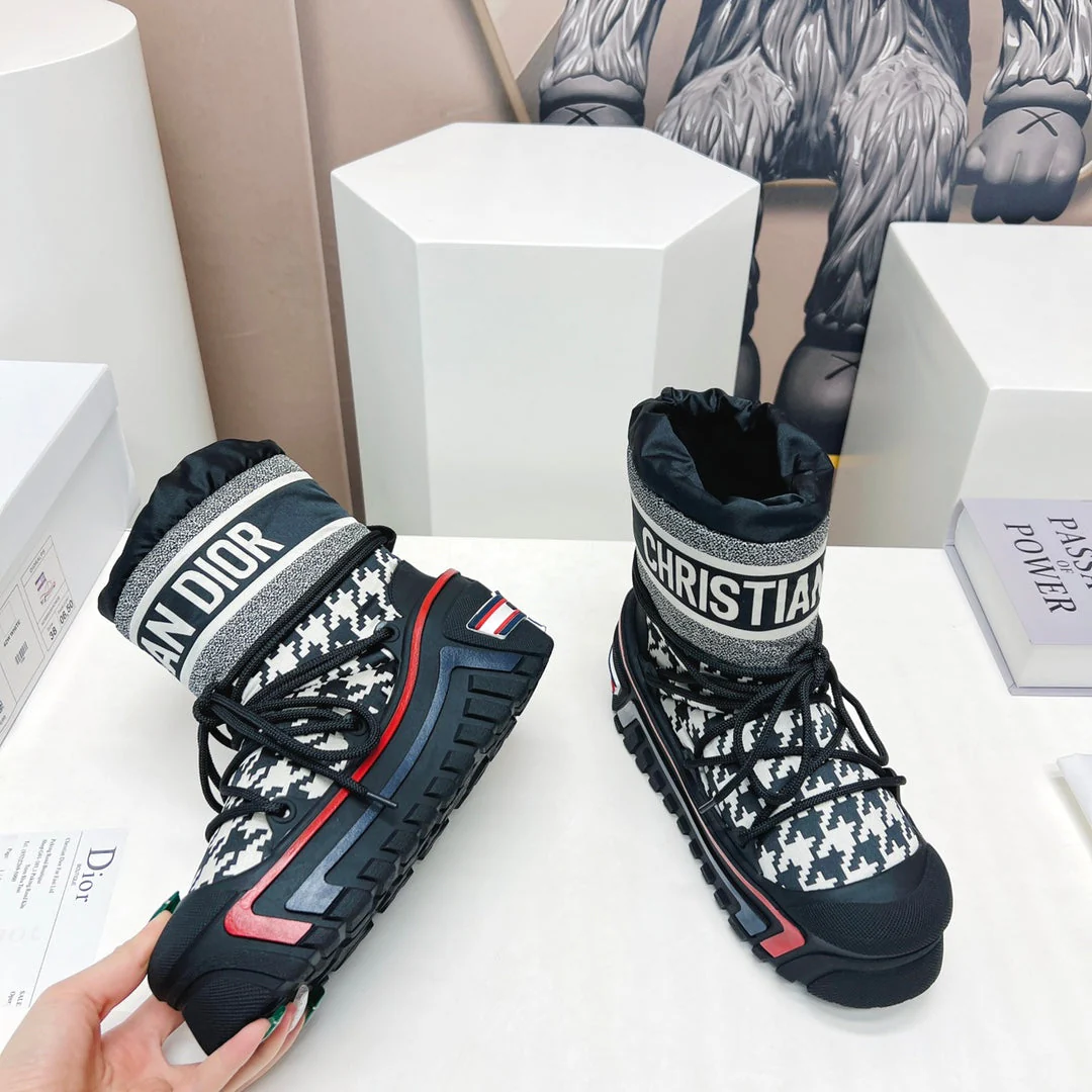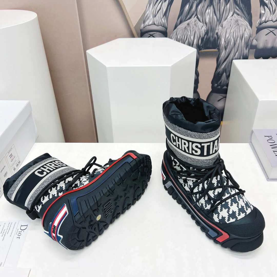 CD Snow Ankle Boots Black White Cowhide Nylon Fabric 539663