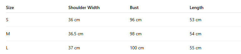 Size : S, M, L