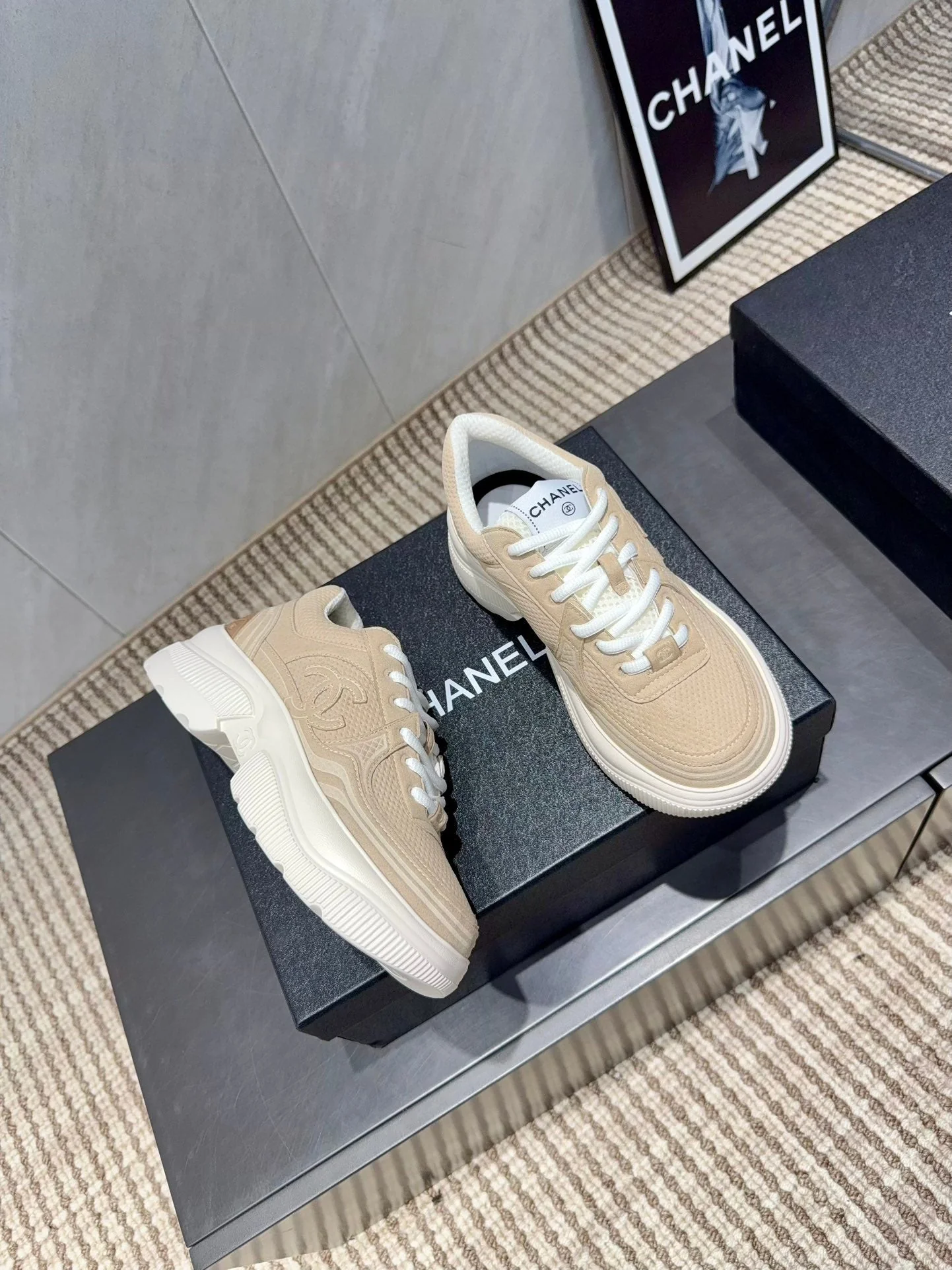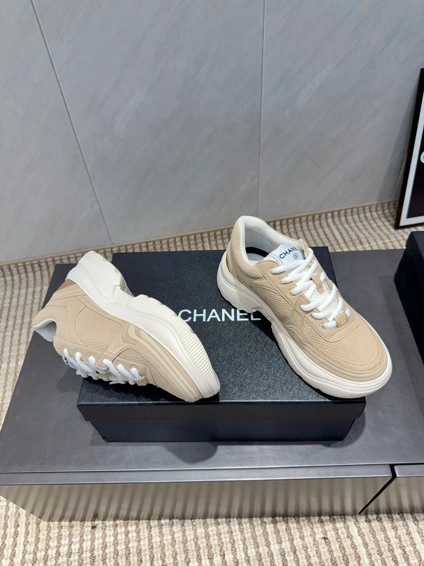 Chanel 25 Sneaker Light Brown White Mesh Fabric 540318