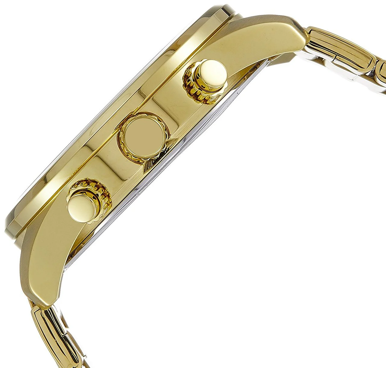 Featuring a timeless aesthetic blending classic and contemporary elements, this tastefully designed automatic watch showcases stylish simplicity. The gold-tone stainless steel case and bracelet are complimented by a white coloured face with date display for a look that is as versatile as your wardrobe, 50 meter water resistance makes this a watch that is durably built for active everyday wear. Featuring durable stainless steel and mineral glass construction, it is built to make sure you never miss a beat anywhere on earth.