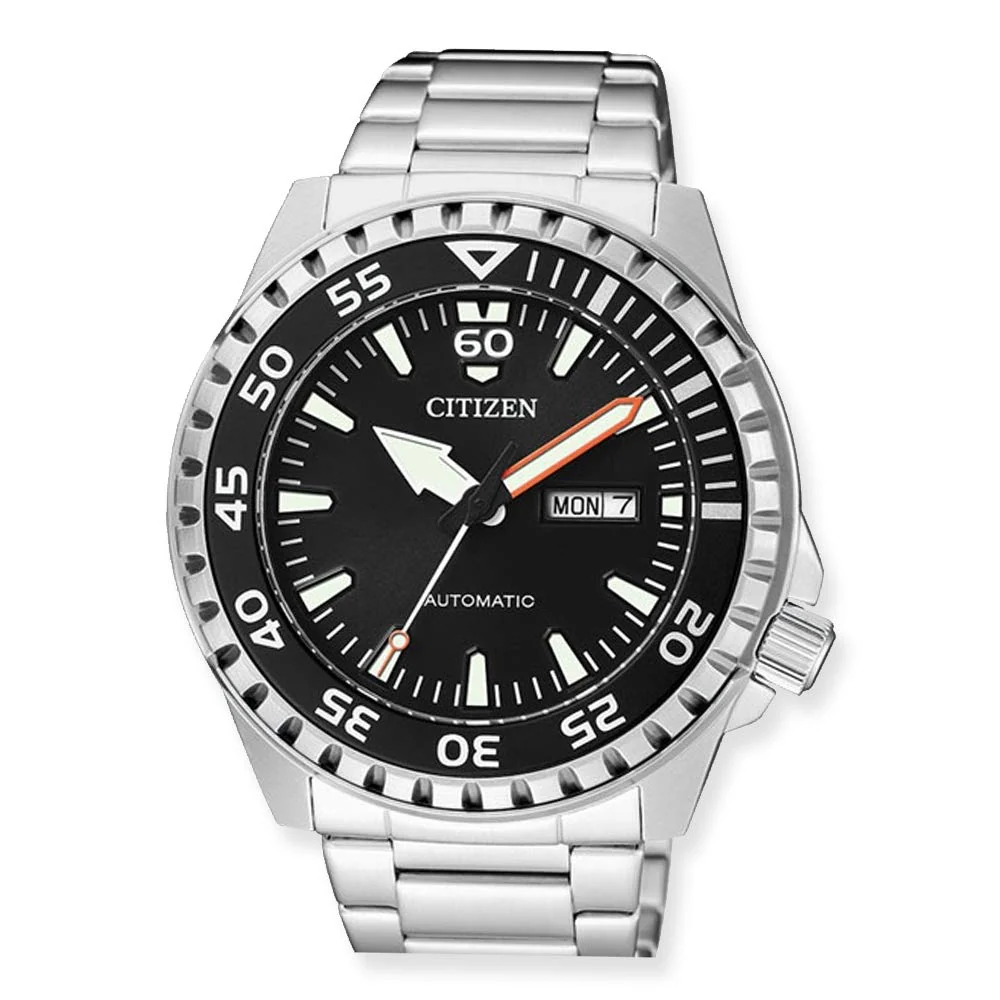 Soar to new heights with this modernised timepiece from our Mechanical Collection. Its modern and contemporary design reflects great craftsmanship and enduring quality. It’s sleak black dial, Day/Date, stainless steel case and bracelet compliment its pure and appealing aesthetic.