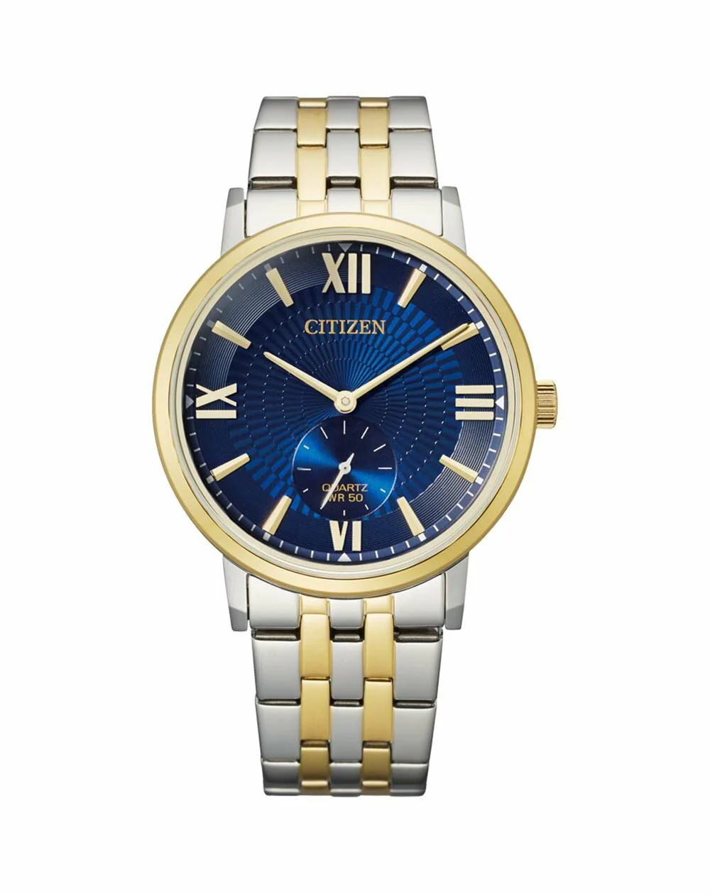 This watch from the Gents Dress collection is designed to be a functionally effective timepiece for the modern man on the go. Dependable in the extreme, it features a sleek deep blue dial with gold accents, roman numerals and a two toned stainless steel case and bracelet. A timeless aesthetic blending classic and contemporary elements, this tastefully designed Quartz powered watch showcases stylish simplicity and will effortlessly take you from day to night.