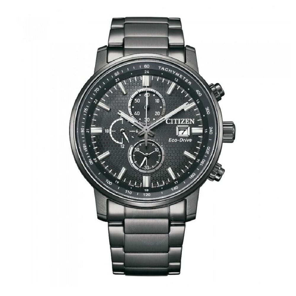 Choose the newly designed CITIZEN Eco-Drive collection, powered by light, with distinguished features sure to stand out on your wrist. This stylish watch in a stainless steel case and bracelet with complimentary blue dial, features 1/5-second chronograph measuring up to 60 minutes, 12/24-hour time and date. Featuring CITIZEN Eco-Drive technology – powered by any form of light and convert into energy to power the watch with no need for regular battery replacement.