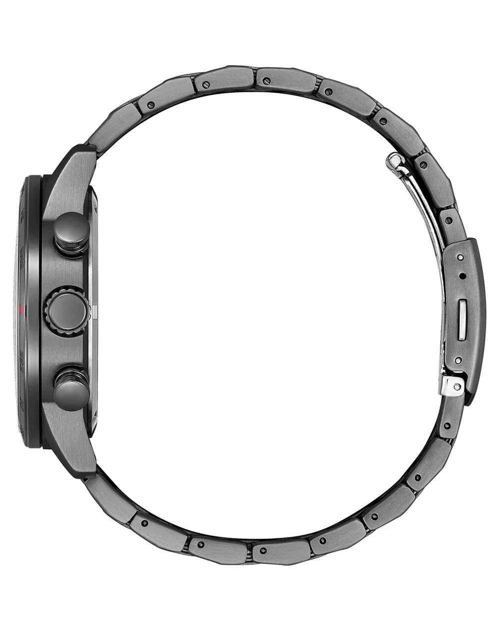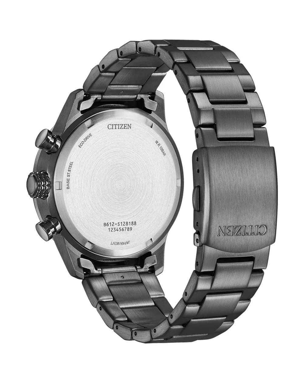 The pursuit of precision, the hallmark of the Chronograph Collection, lies at the core of this modern stylish timepiece. In addition to accuracy ensured via the chronograph, the performance of this watch is powered by Eco-Drive, obtaining energy from any light source, and eliminating the need for batteries. Featuring WR100 with a multi dial as well as date display. Constructed with stainless-steel with a deep black dial this watch is as sharp on looks as it is on performance.