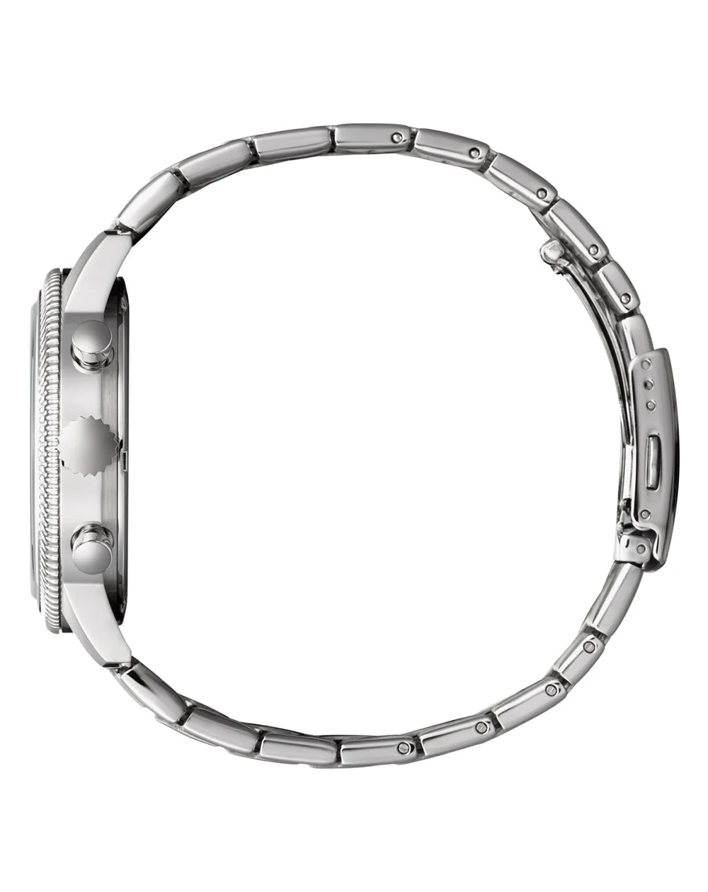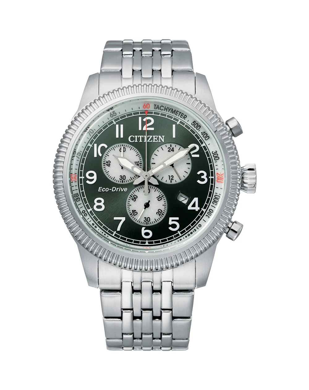 The pursuit of precision, the hallmark of the Chronograph Collection, lies at the core of this ruggedly stylish timepiece. In addition to accuracy ensured via the chronograph, the performance of this watch is powered by Eco-Drive, obtaining energy from any light source, and eliminating the need for batteries. Featuring WR100 with a multi dial as well as date display. Constructed with stainless-steel with a deep black dial this watch is as sharp on looks as it is on performance.