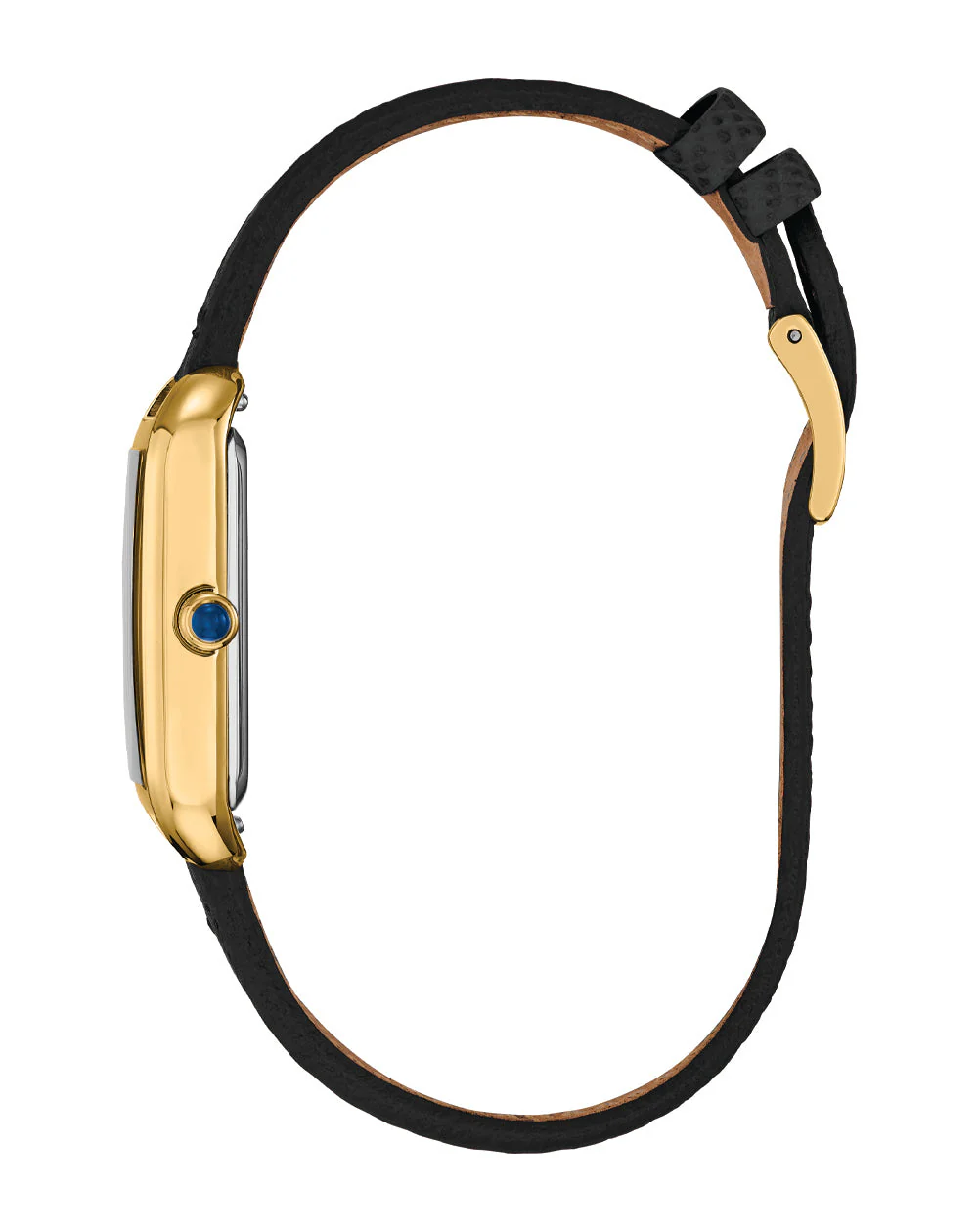 Refined and timeless, the Citizen Eco-Drive EM1192-01E watch blends classic design with modern innovation. Encased in a sleek 23.5mm gold-tone stainless steel frame, its curved lugs flow elegantly into a textured black leather strap for a comfortable, tailored fit. The minimalist black dial, protected by a domed mineral crystal, features understated gold-tone markers and hands that exude quiet sophistication. Powered by Citizen’s Eco-Drive technology, this women’s watch harnesses light for sustainable, battery-free performance. Splash-resistant and impeccably crafted, it makes a subtle yet confident statement of style.