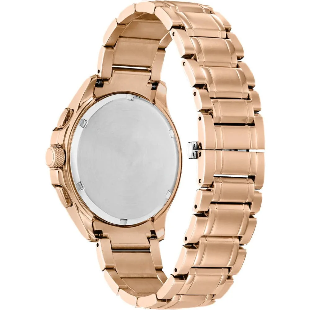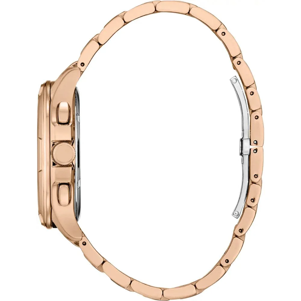 Add sophistication to your look with the Classic 8700. Styled with a brown dial and rose gold-tone stainless steel bracelet, this watch offers timeless charm with advanced functions, including a perpetual calendar, alarm, dual time and water resistance to 100 meters. Completed with a rose gold-tone stainless steel 42mm case. Sustainably powered by any light with Eco-Drive technology – never needs a battery.