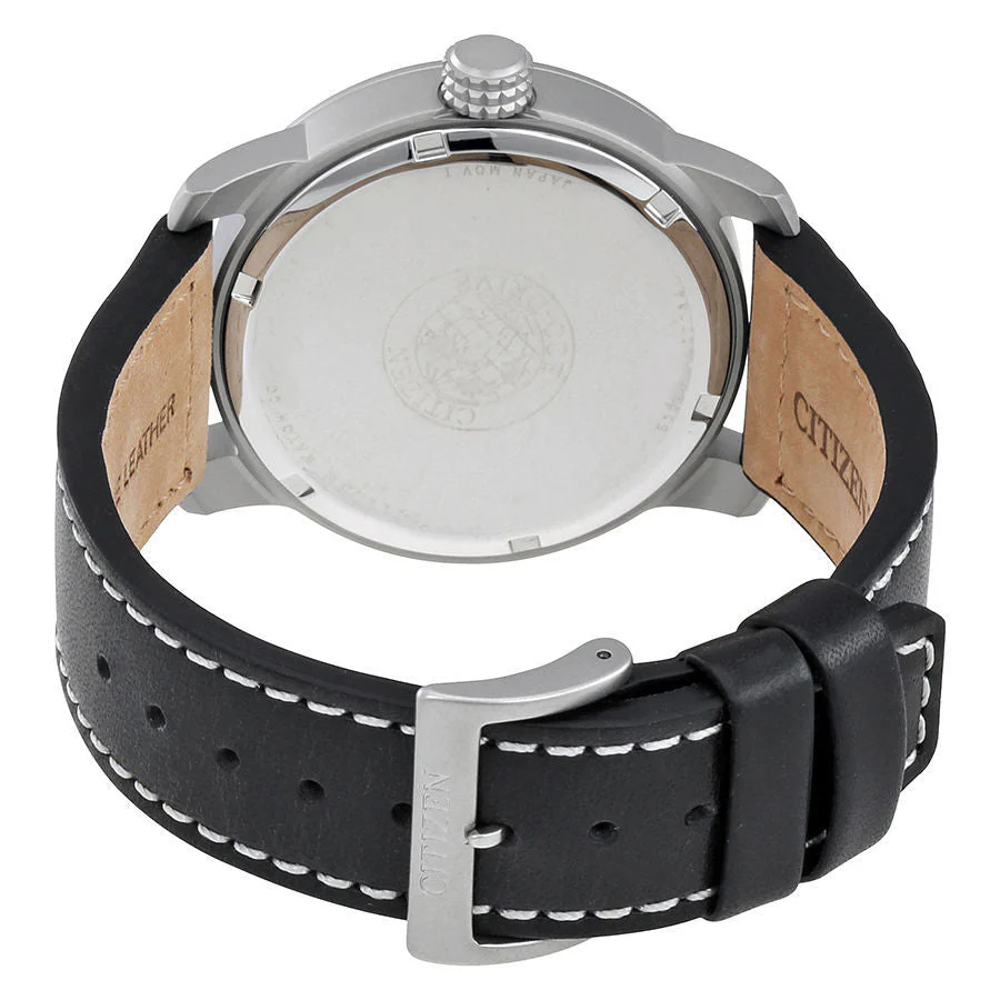 Citizen Eco-Drive Chandler Black Dial Leather Mens Watch