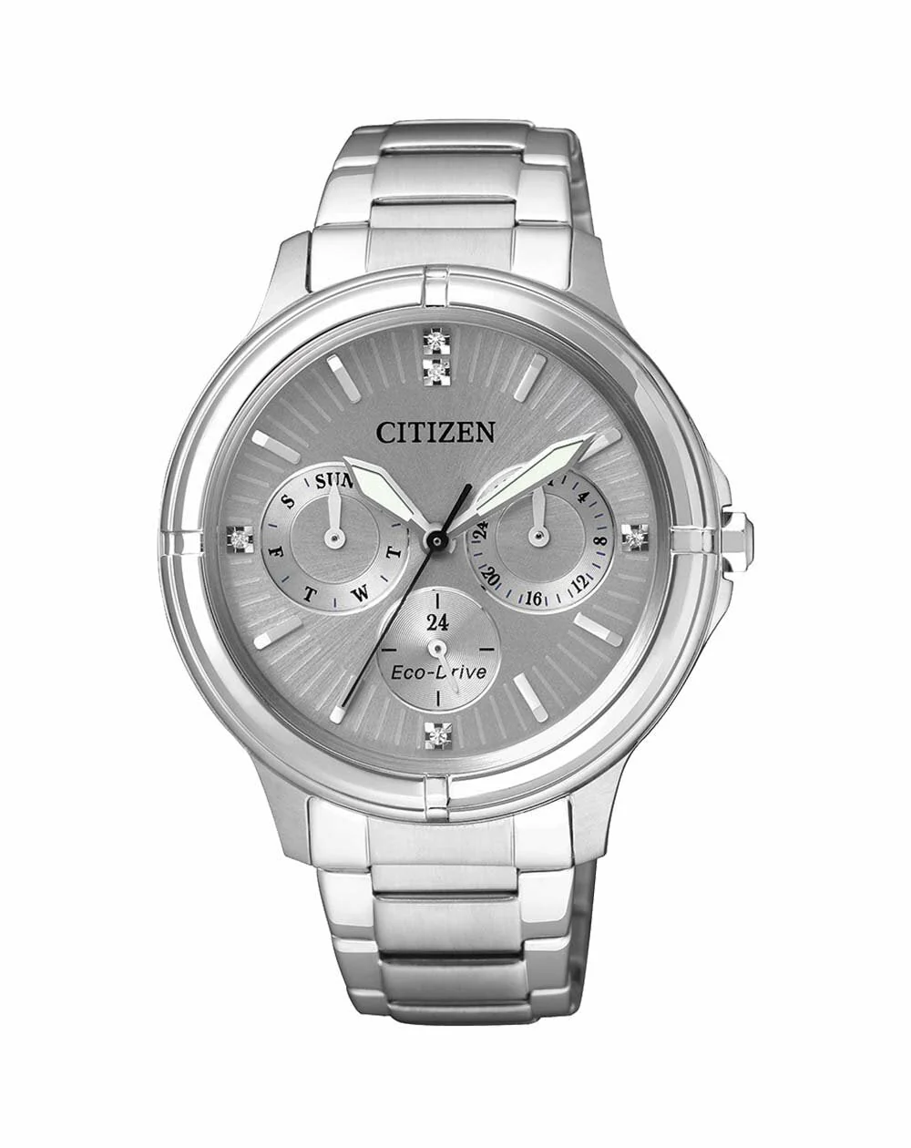 This gorgeous watch from the Swarovski collection is defined by quality in both looks and performance. Crafted from stainless steel and mineral glass, it is at once durable and beautiful. A textured, silver toned dial displays day and date as well as 12 and 24 hour time, with luxury added via brilliantly shimmering Swarovski elements. Easy wearing with the accessibility of a push button buckle, additional convenience is added by Eco-Drive technology, meaning it never requires a battery change so you have more time on your hands.