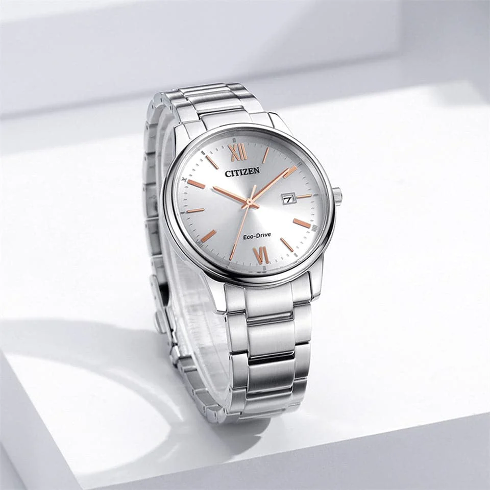 A time-honored watch with clean lines and simple accents, this watch will never go out of style. Featured here in black stainless steel with black dial, rose gold-tone accents, sapphire crystal and date. Water resistant up to 50 meters equipped with Eco-Drive technology powered by any form of light.
