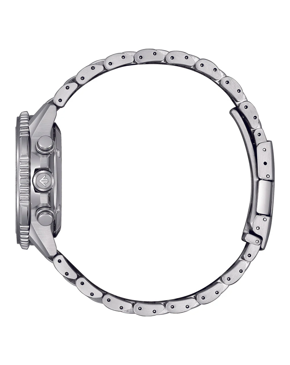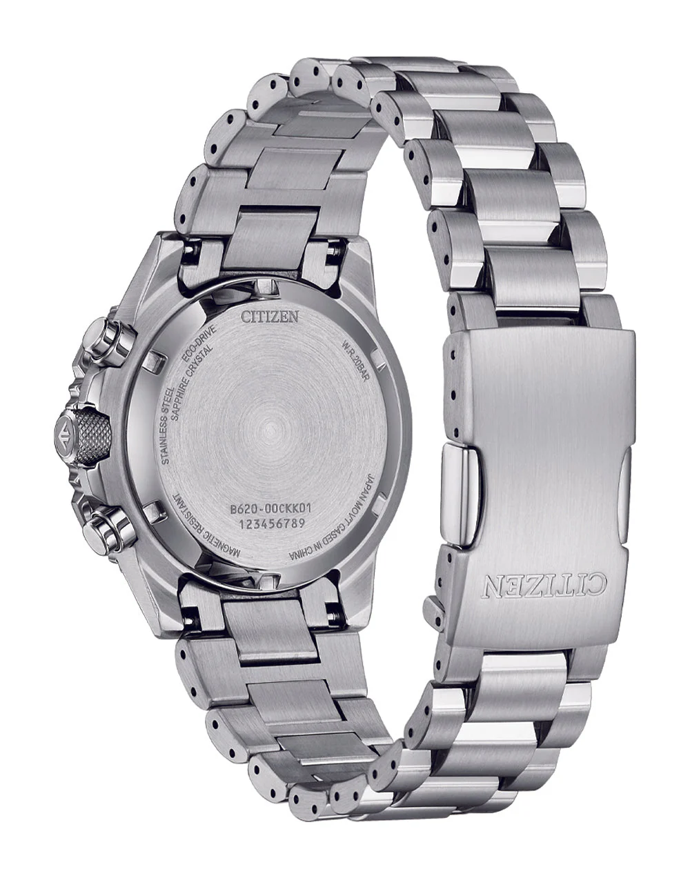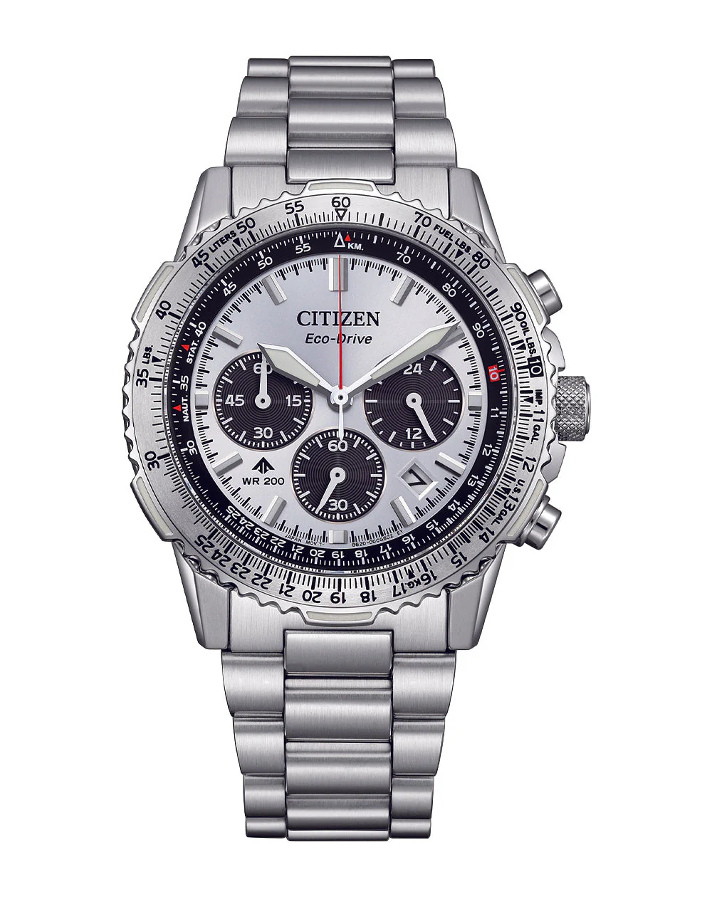 Combining advanced chronograph function with refined craftsmanship, the Citizen Eco-Drive Promaster Navihawk is a standout men’s watch designed for precision and durability. The 40mm silver-tone stainless steel case and bracelet create a bold, polished look, enhanced by a slide-rule bezel and multi-textured silver dial with red and black accents for optimal legibility. This timepiece is powered by Eco-Drive technology, drawing energy from any light source for sustainable, battery-free operation. A scratch-resistant sapphire crystal protects the dial, while water resistance up to 200 meters ensures reliable performance in any environment. Designed for explorers and professionals, it features a 1/5 second chronograph, 12/24-hour time format, and a practical date display, making it a sophisticated essential in the watches category.