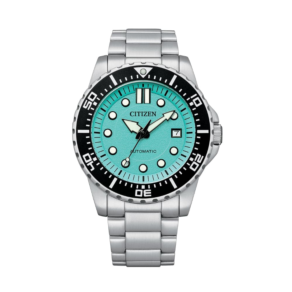 Soar to new heights with this modernized timepiece from our Mechanical Collection. Its modern and contemporary design reflects great craftsmanship and enduring quality. Its sleek aqua blue dial, Date, stainless steel case and bracelet complement its pure and appealing aesthetic.