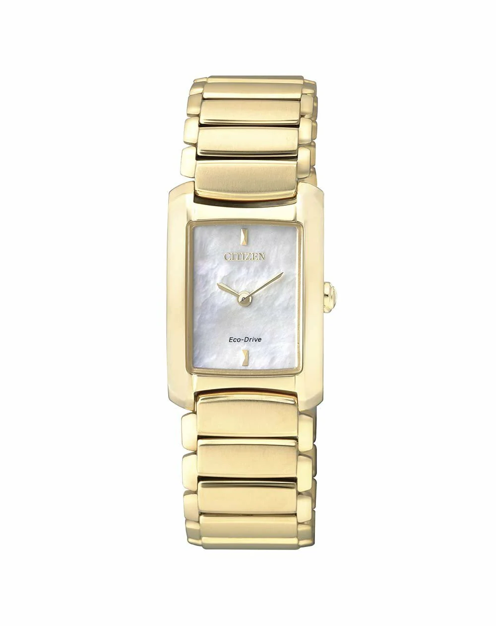 With a gorgeous mother of pearl dial set against gold tone stainless steel case and bracelet, this watch from the Ladies Eco-Drive Collection is obtaining energy from any light source and eliminating the need for batteries. Embodies classic styling with sapphire glass with comfortable wearing push button buckle, making it a stunningly versatile piece. Caliber number G620.