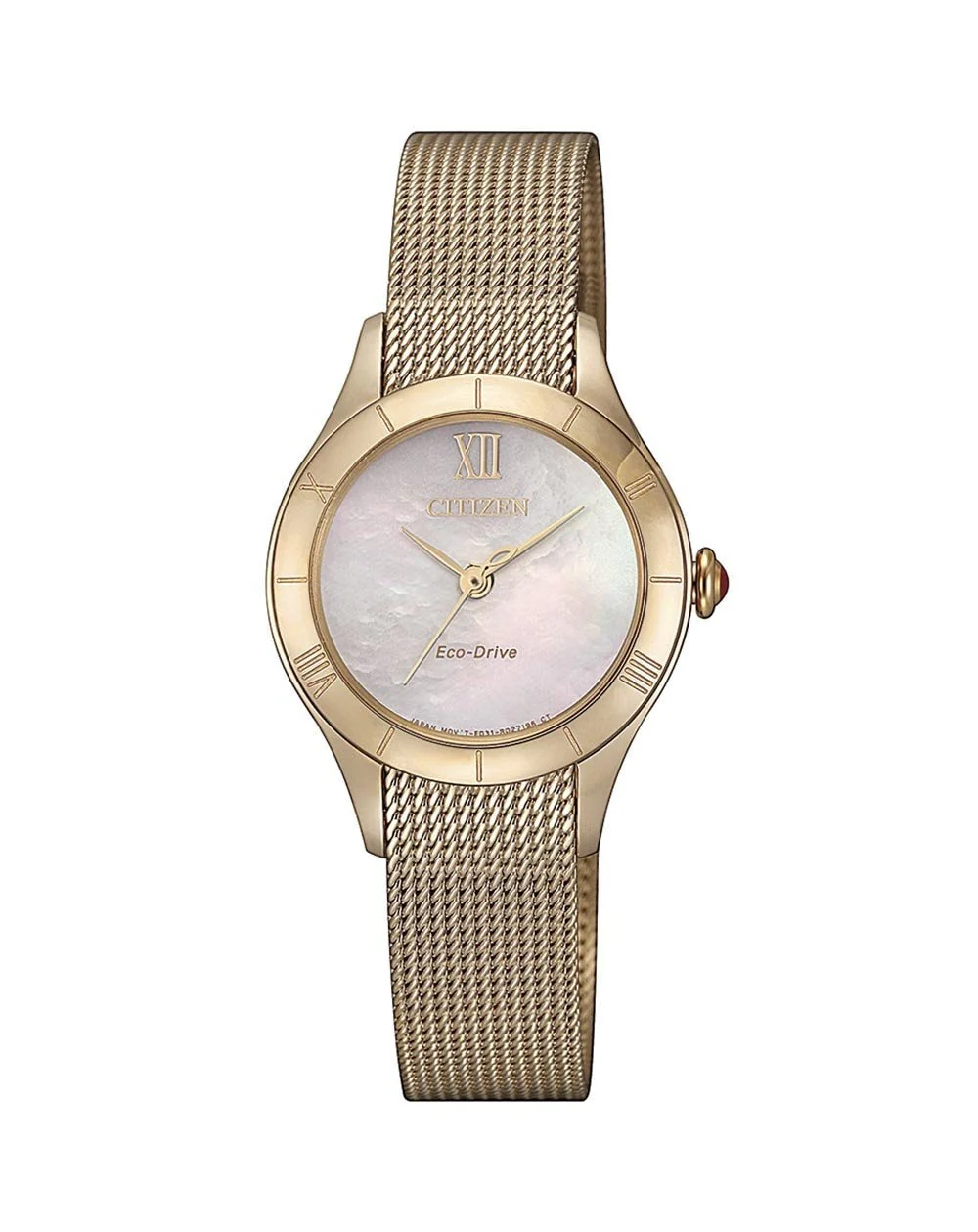 Embrace beauty and power with a new style of luxury watch for ladies. A simple beauty that reflects true inner quality and fine watchmaking, encompassing all the features to enhance your style. A rose gold-tone stainless steel case with elegant rose gold-tone stainless steel mesh bracelet paired with sapphire crystal glass. Featuring Eco-Drive technology – powered by light, any light, so it never needs a battery, wear this watch effortlessly from day to night.