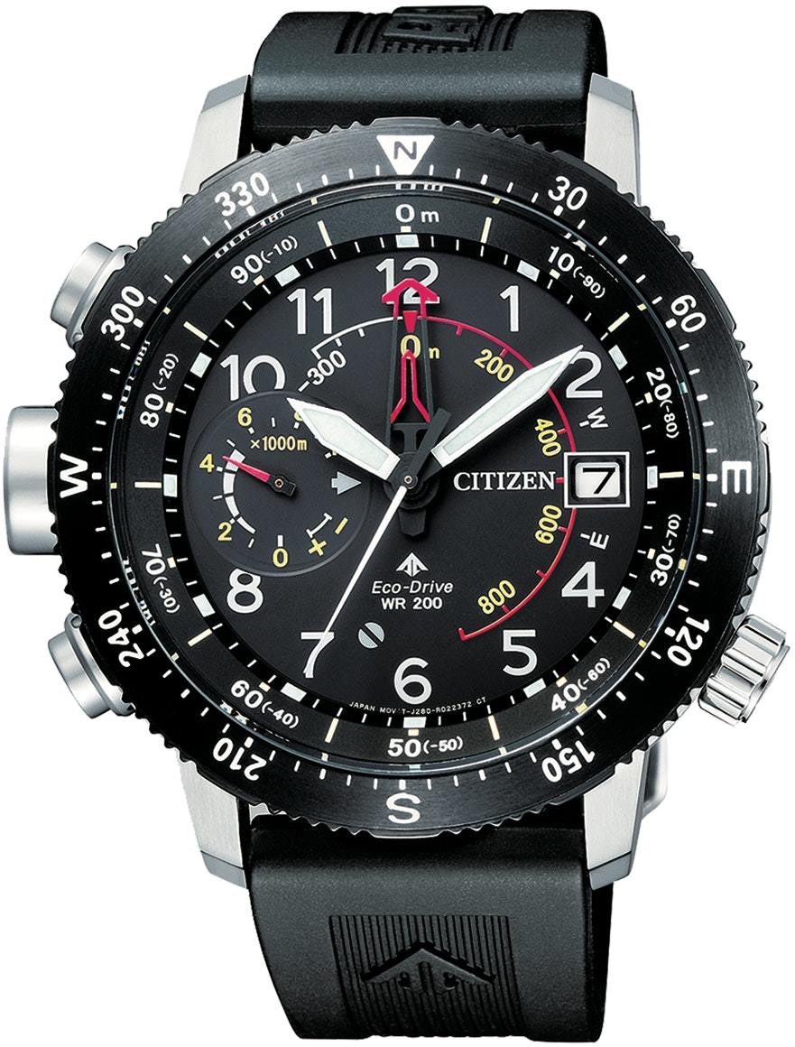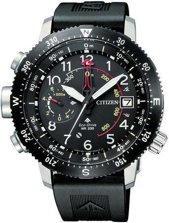 Part of the PROMASTER Collection, this ALTICHRON watch is equipped to help you climb to imagination-defying heights. Designed for adventure, it features rugged construction from stainless steel with black ion plating, durable polyurethane band, compass and an altimeter that is accurate from -300 to 10,000 metres above sea-level