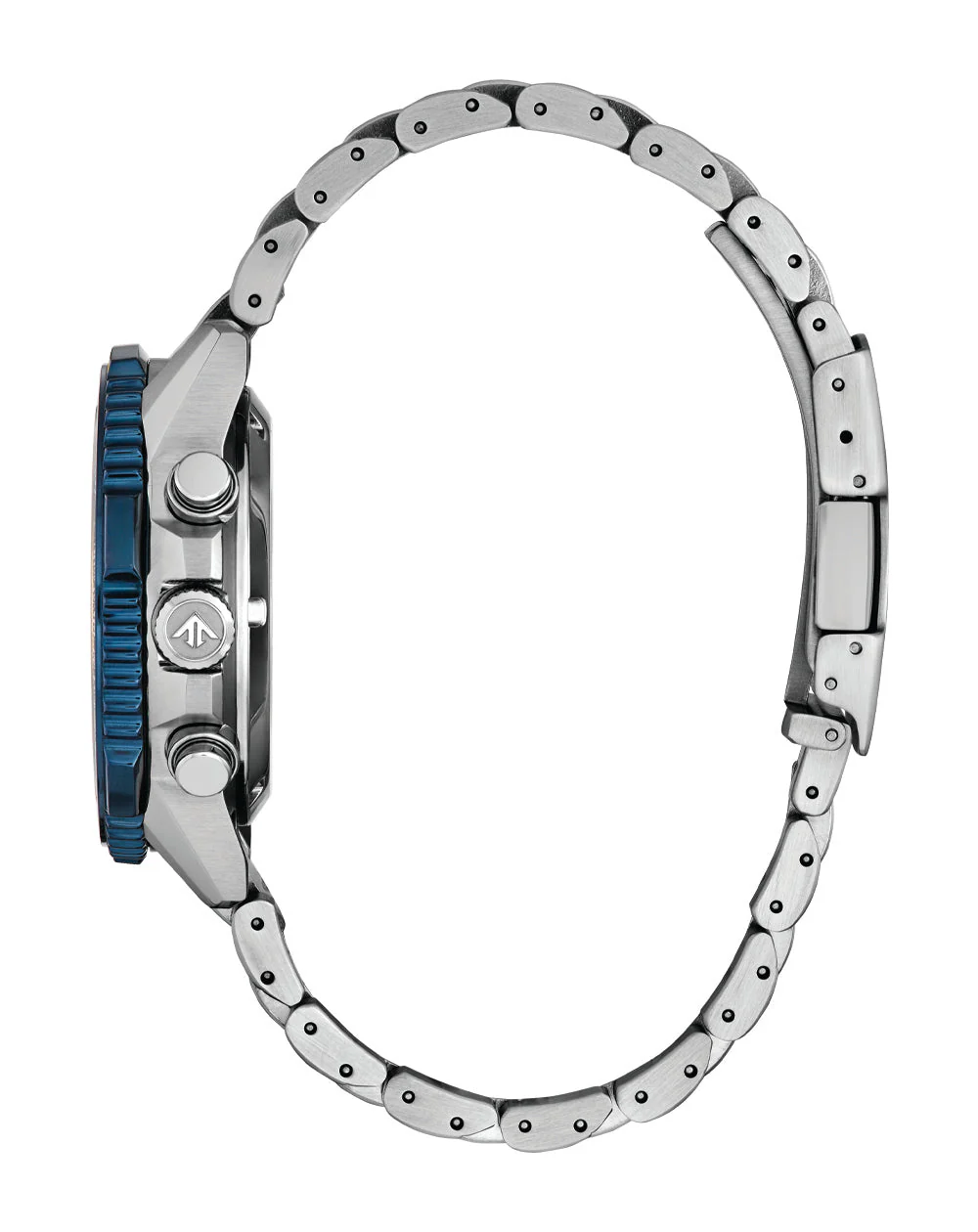 The Citizen Promaster Sky CA4667-53L offers striking functionality within a refined design, crafted for performance and enduring style. Its sky blue dial stands out with clean contrast against a durable stainless steel case and bracelet, finished with luminous hands and bold chronograph subdials. Protected by scratch-resistant sapphire crystal, this men’s watch ensures unrivaled clarity and resilience. The precise quartz movement delivers reliable timekeeping, while essential features like 12/24-hour time, date display, and a 200-meter water resistance make it ideal for both professional and everyday wear. Citizen’s advanced craftsmanship is evident in every detail, bringing together innovative technology and enduring aesthetics with effortless appeal.