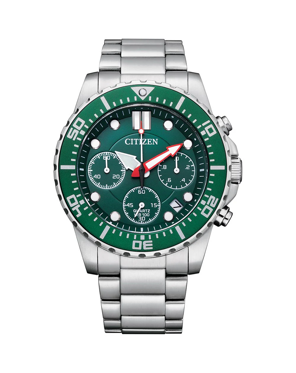 Passionate about diving? Sport? Then look no further as this timepiece is perfect for adventurers. A robust construction, over-sized 43mm case and bold styling provide a sporty presentation. This diver’s style statement chronograph is equipped with quartz movement and advanced time measurement function up to 1/20 second with a 4-beat semi-sweep center hand. Secondary functions include date, flat mineral crystal glass and water resistance up to WR100/10 Bar for swimming and snorkelling. This model has a silver stainless steel bracelet and case against a contrasting green dial. The range provides some vivid colour variations and textures to choose from for even greater visibility and sports appeal. Calibre 6520.