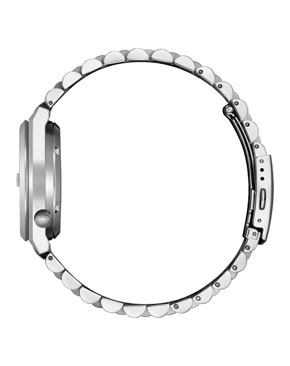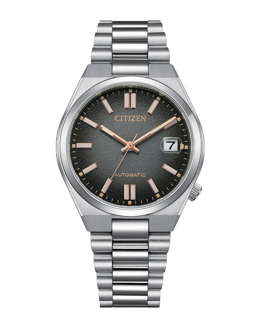 Blending timeless design with modern precision, the Citizen Tsuyosa Automatic black dial watch showcases the brand’s craftsmanship in a sleek 37mm stainless steel case. The silver-tone integrated bracelet and smooth bezel provide a seamless, polished look, while the textured black dial features refined indices, a date window, and 12/24-hour time markers. Protected by anti-reflective sapphire crystal, this automatic men’s watch offers durability without compromising on elegance. With water resistance up to 50 meters, it transitions effortlessly from daily wear to more formal occasions, embodying Citizen’s commitment to quality and style.