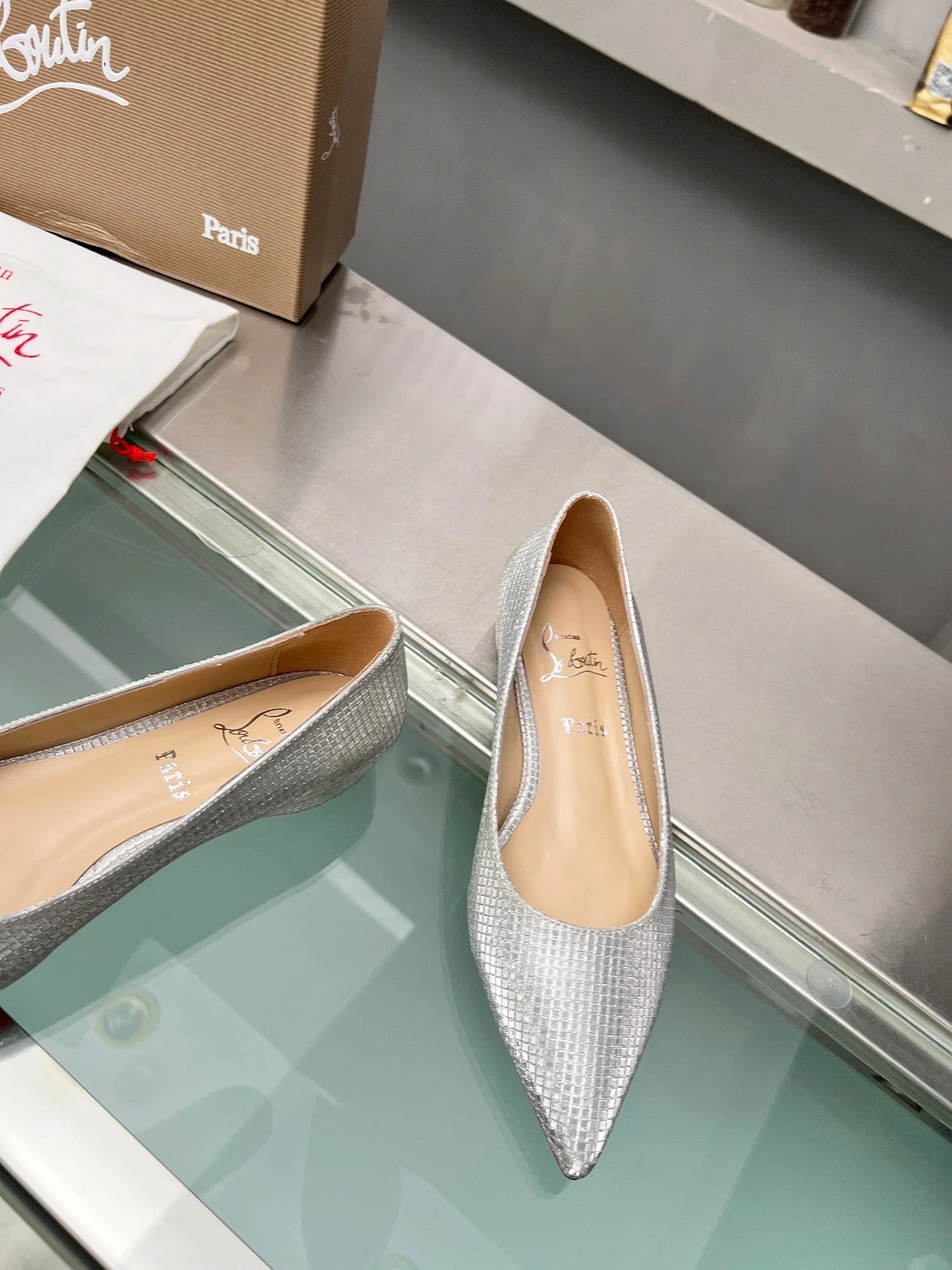 CL Kate Ballerina Flats Sequin Fabric Silver
