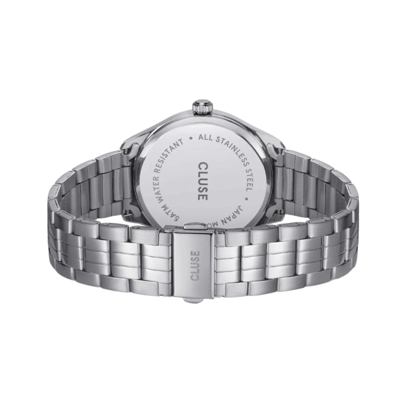 Introducing the CLUSE Antheor Black Dial Silver Stainless Steel Link Watch, a remarkable addition to our men’s watch collection that embodies sophistication and modernity. Crafted with a 41 mm brushed and polished silver stainless steel case, this watch features a striking black sunray dial that commands attention. The 20 mm wide silver stainless steel strap complements the case, creating a sleek and harmonious design perfect for any occasion. With a durable quartz movement and a water resistance of 50 meters, it effortlessly combines functionality and style. Ideal for those who appreciate quality craftsmanship, this timepiece is a statement of elegance that will elevate any outfit.