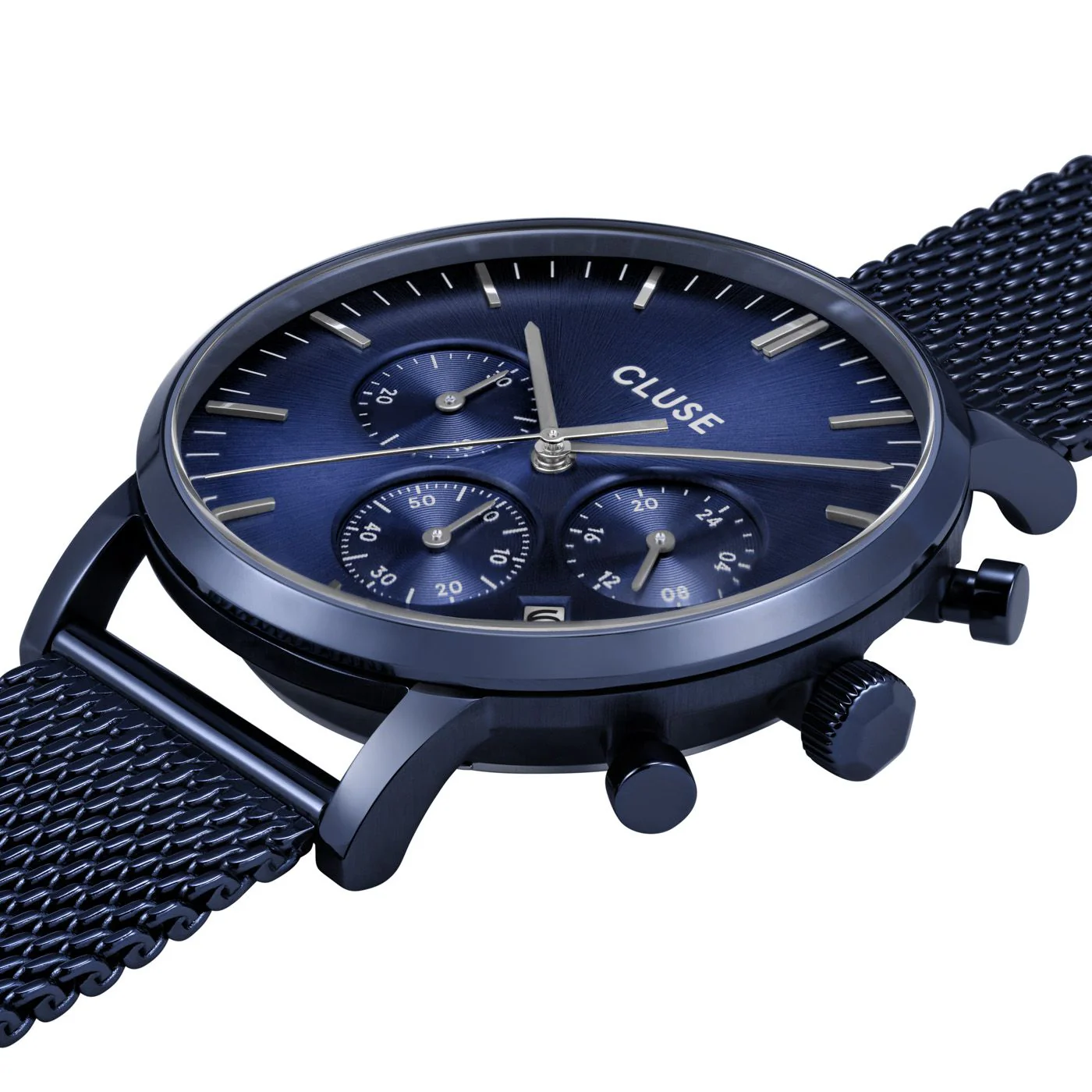 Designed in Amsterdam, CLUSE watches now introduce their new men’s collection, Aravis The refined style represents sophistication and elegance in its purest form. The leather and stainless steel watch straps are easy to swap allow you to personalise your watch to create a wide range of new looks. The watch features a blue stainless steel case, blue dial and blue stainless steel mesh strap.