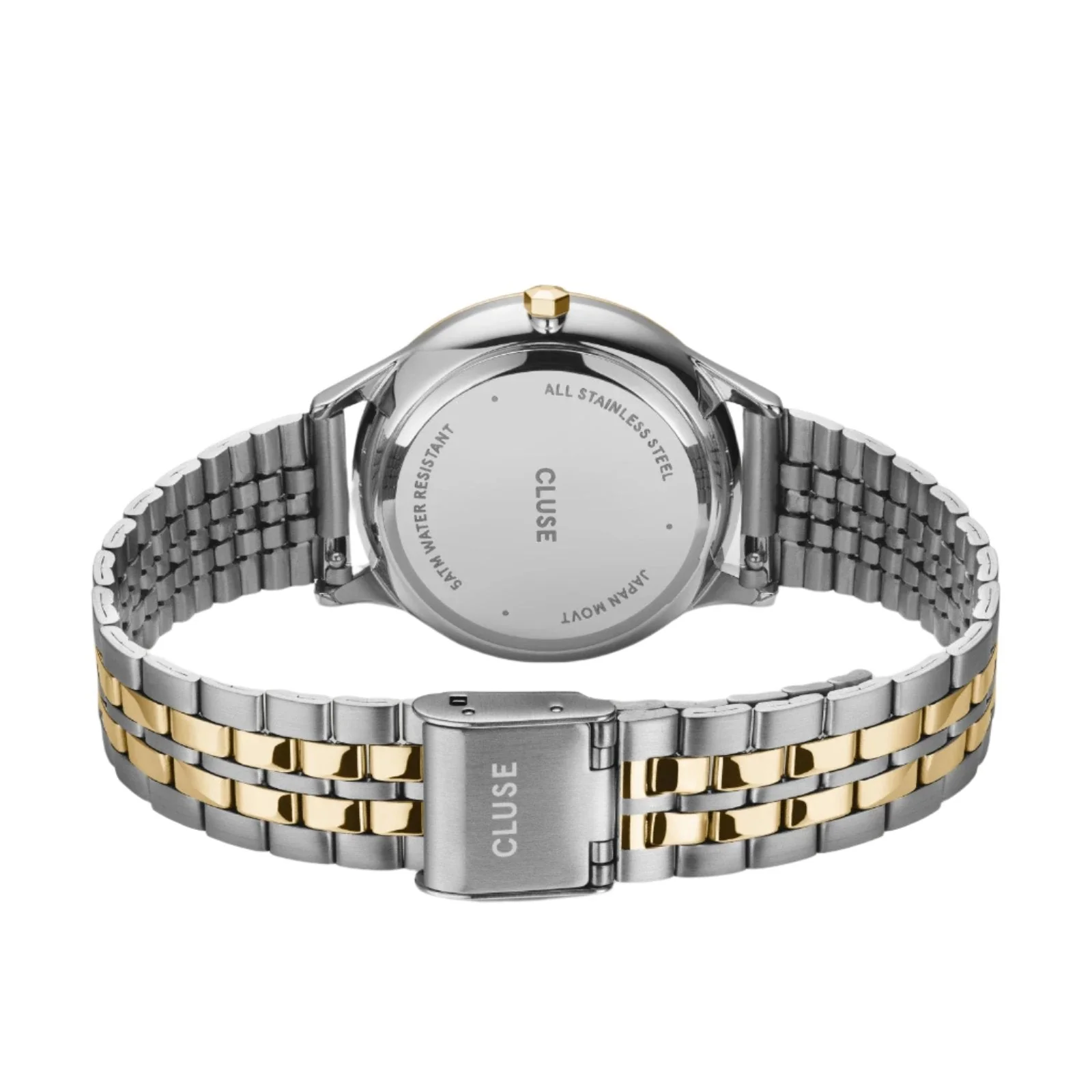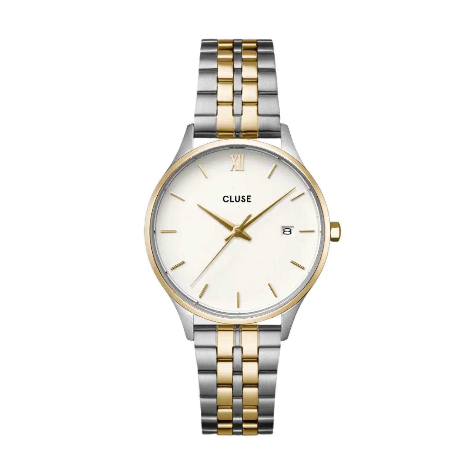 Refined and versatile, the CLUSE Minuit Date Coconut Milk Bicolour Link Watch blends timeless appeal with modern elegance. Designed for the contemporary woman, this women’s watch features a 34 mm gold and silver stainless steel case paired with a sleek 5-link bicolour strap. The coconut milk white dial is accented by minimalist gold hour markers and a discreet date window at 3 o’clock, offering a subtle balance of function and style. Crafted with a mineral crystal glass and quartz movement, it delivers reliable timekeeping with a polished finish. Water resistant up to 50 meters and compatible with interchangeable 16 mm straps, it offers both durability and customization. Perfectly positioned within premium watches for women, this piece stands out with its chic two-tone design, quality craftsmanship, and effortless sophistication.