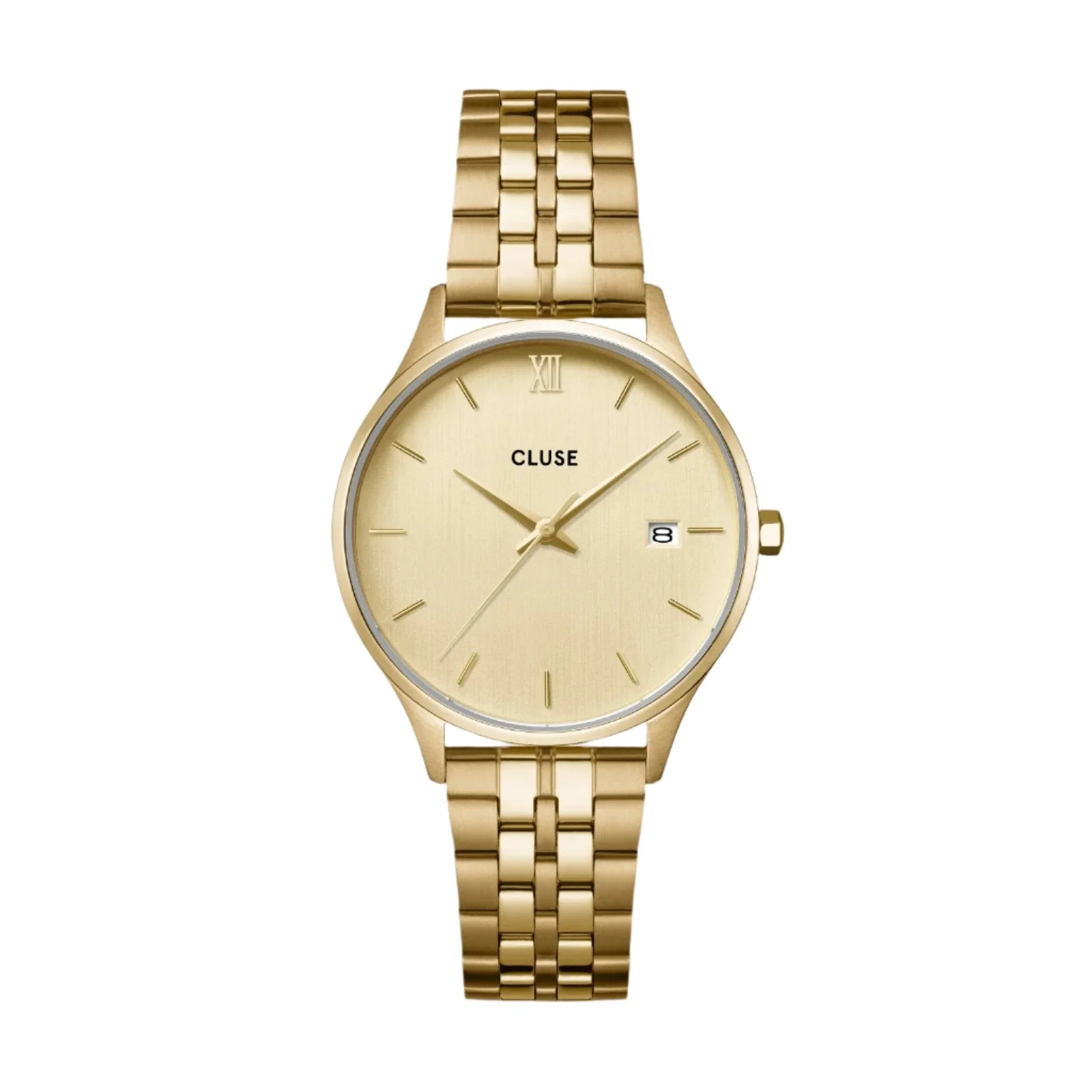 Effortlessly stylish, the CLUSE Minuit Date Full Gold Link Watch CW14301 captures timeless sophistication with its gold-tone stainless steel 5-link strap and matching 34mm gold case. Designed as a refined women’s watch, it features a minimalist gold dial and a discreet date display at the three o’clock mark, offering both elegance and practicality. With a durable mineral crystal glass, reliable quartz movement, and 50 meters water resistance, it balances fashion with functionality. Ideal for daily wear or formal occasions, its 16mm interchangeable strap allows for easy customization, adding versatility to your accessory collection. A standout in the watches category, this piece combines luxury and everyday ease.