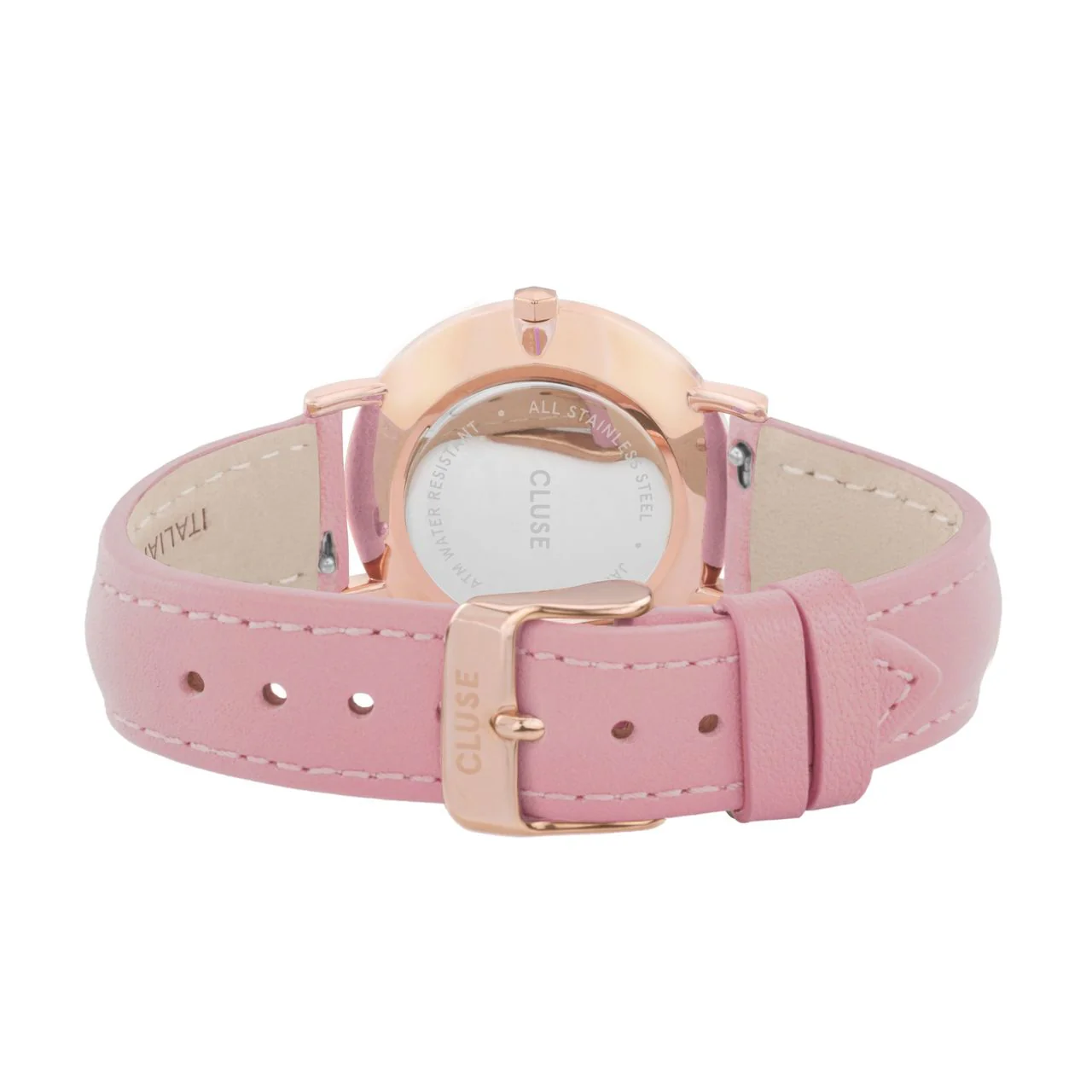 The watch features a 33mm rose gold plated stainless steel case, where white is combined with rose gold details to create a beautiful minimalist timepiece.